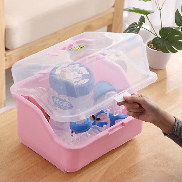 KHAY , GIÁ PHƠI ÚP BÌNH SỮA CÓ NẮP ĐẬY CÓ QUAI XÁCH TIỆN LỢI BẢO QUẢN VẬT DỤNG VỆ SINH SẠCH SẼ TRÁNH ẨM MỐC CÔN TRÙNG