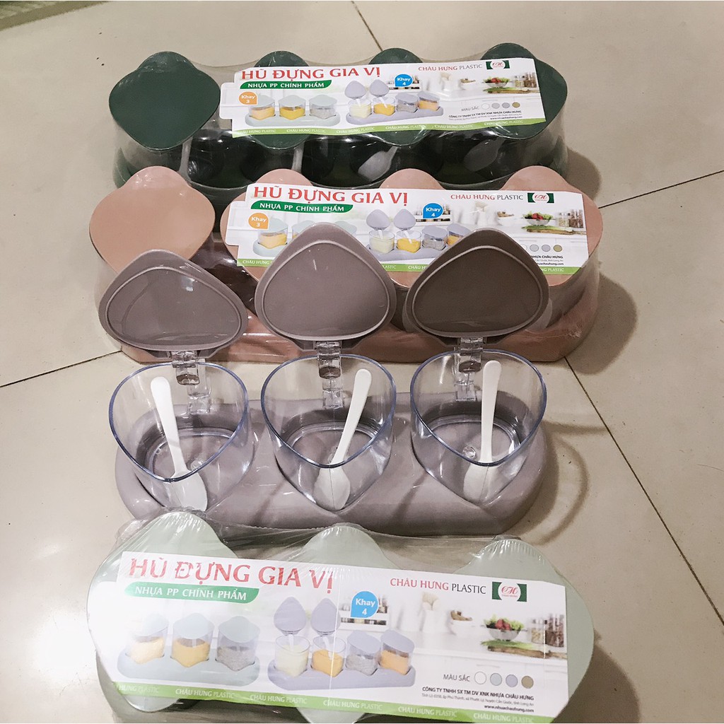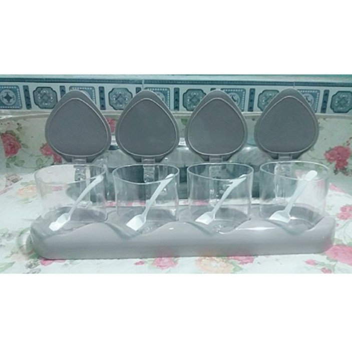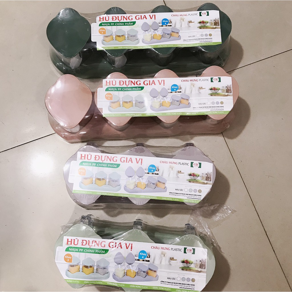 ✅ trong suốt giúp nhìn rõ gia vị trong hũ ,Có khay đựng 4 hũ như hình