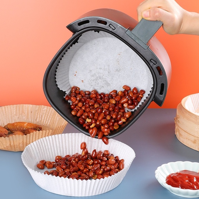 Khay giấy lót nồi chiên chống dính, giấy nến lót xửng hấp có thành chịu nhiệt tốt hộp 50 chiếc