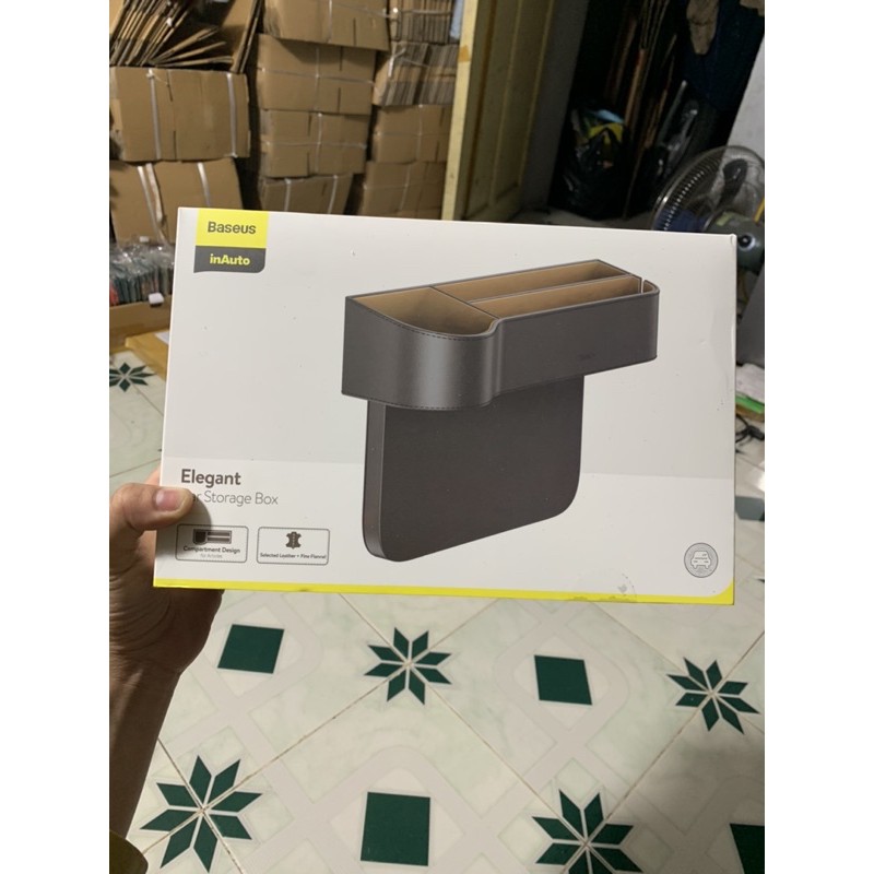 Khay gỗ bọc da Baseu đựng đồ khe ghế ô tô xe hơi Elegant car Storage box chính hãng