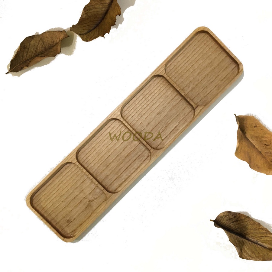 Khay gỗ bốn ngăn decor, đựng thức ăn