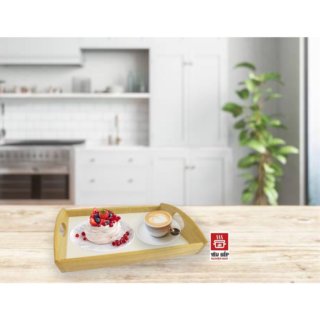 Khay Gỗ Cao Su Đức Thành Hình Chữ Nhật Có Tay Cầm, Đáy Mica 27731 Đựng Trà, Trái Cây, Thức Ăn Đa Năng Tiện Dụng