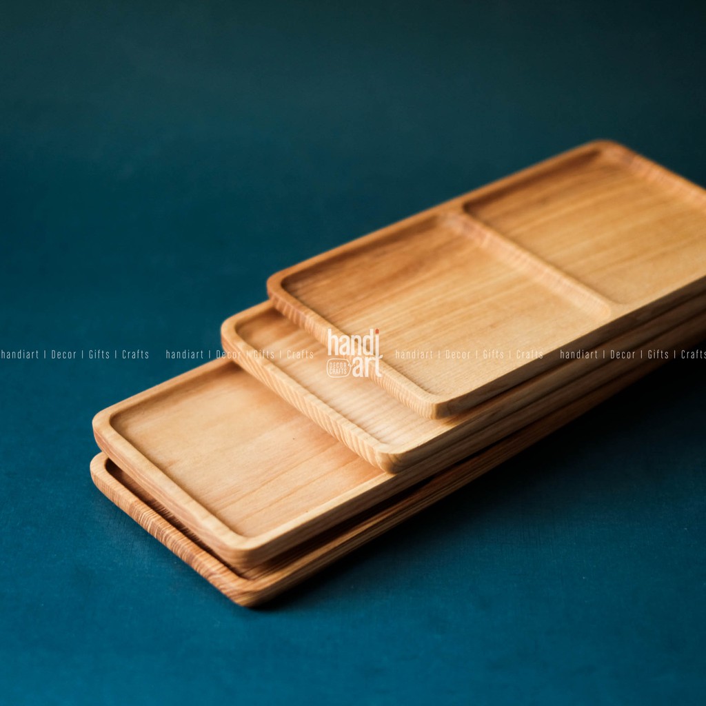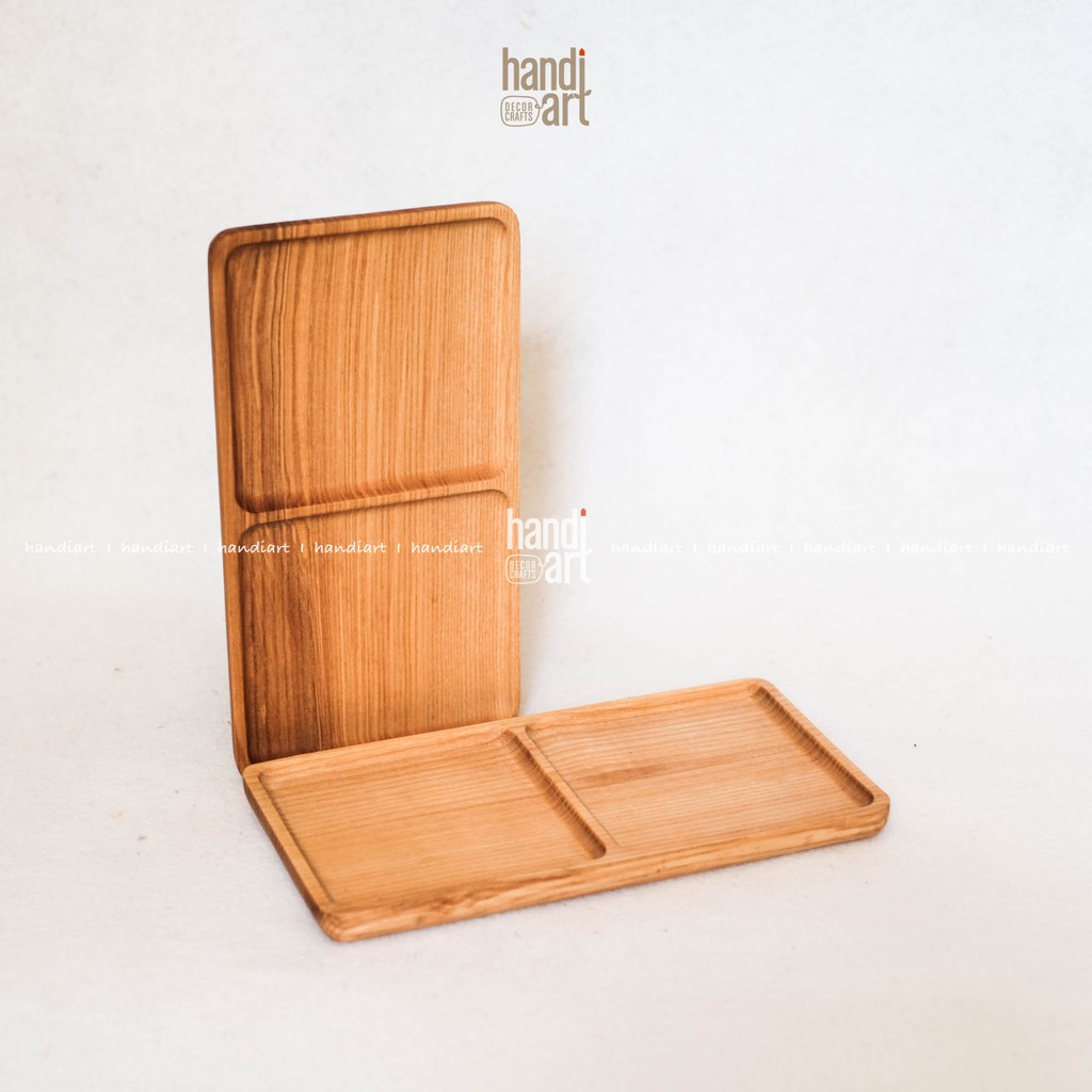 Khay gỗ chữ nhật 2 ngăn/ Khay gỗ 2 ngăn decor (24x13cm)