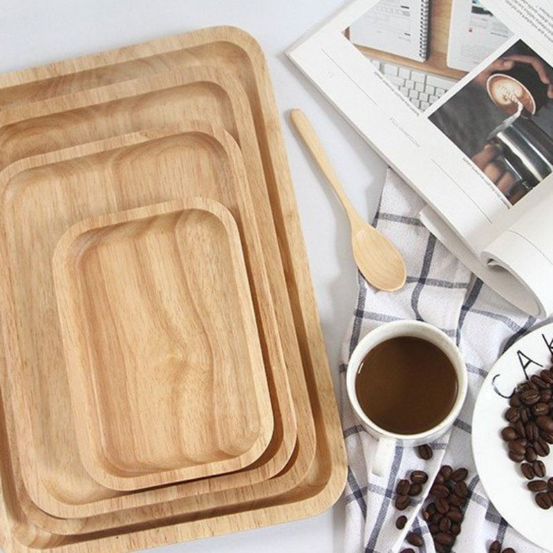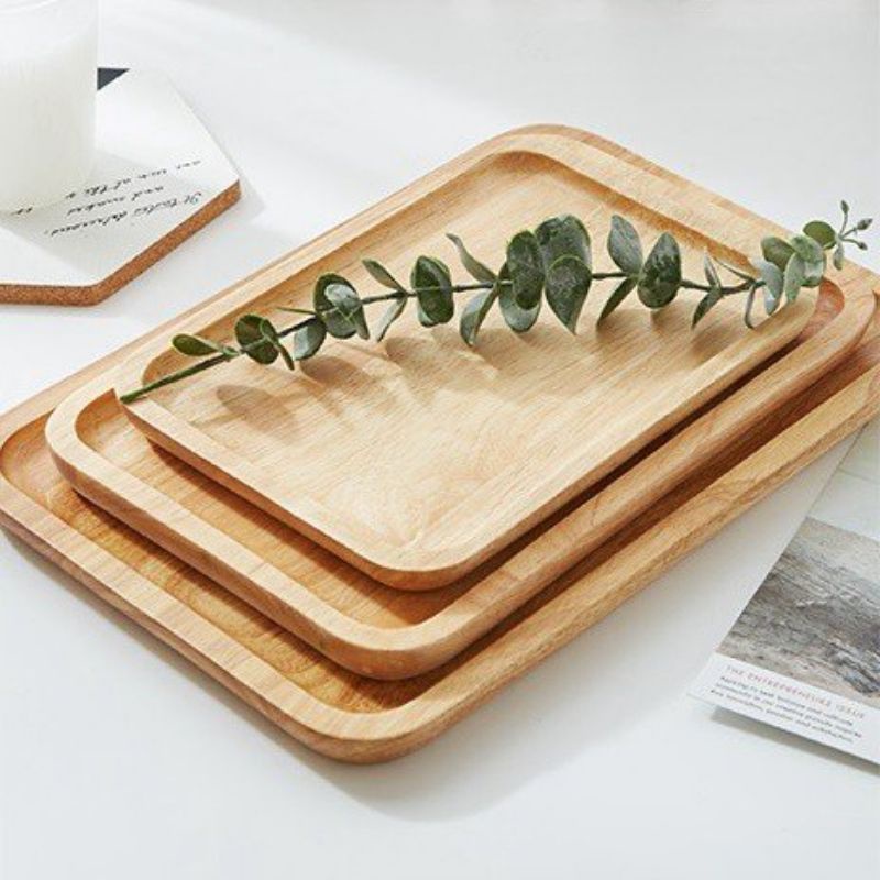 Nhà cửa & Đời sống > Bộ đồ bàn ăn > Khay, tấm lót bàn ăn || Khay gỗ chữ nhật cách nhiệt chống dính trang trí gỗ cao su Nhật BảnCòn hàng