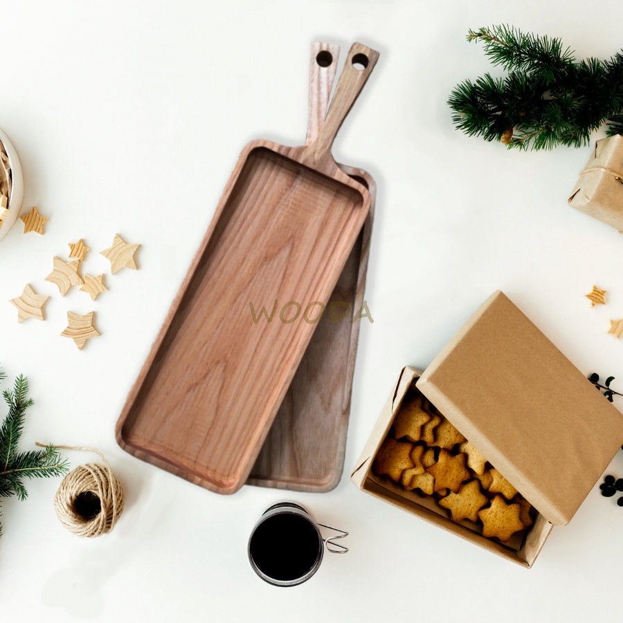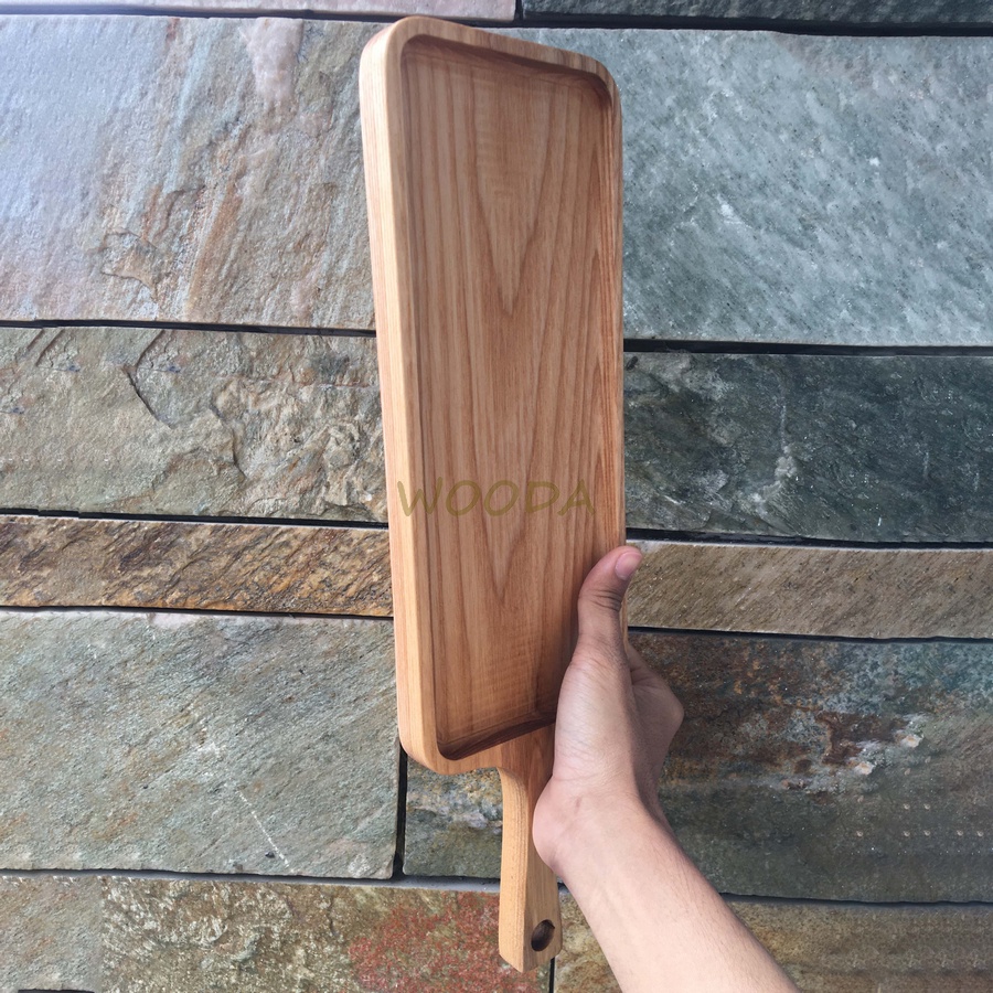 Khay gỗ chữ nhật loại dài có tay cầm