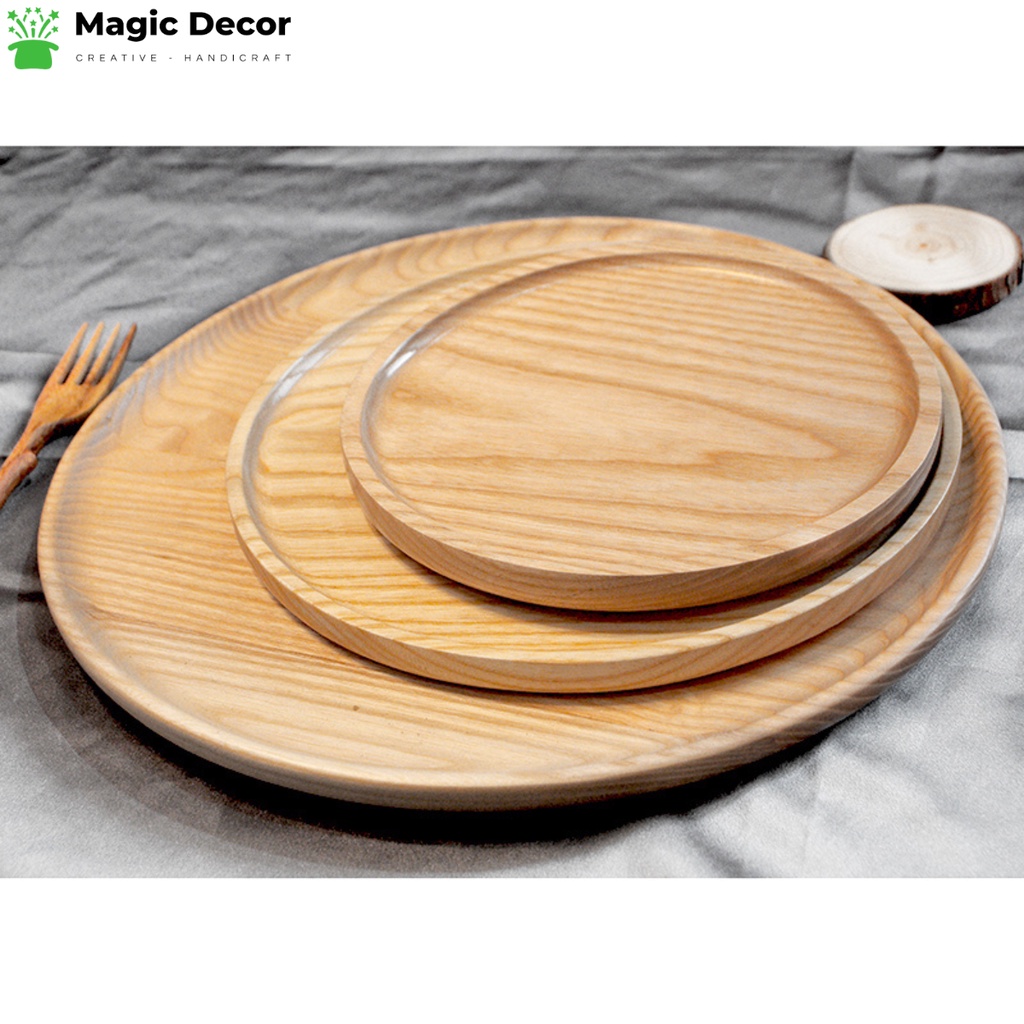 Nhà cửa & Đời sống > Bộ đồ bàn ăn > Khay, tấm lót bàn ăn || Khay gỗ decor trang trí, đựng đồ ăn hình tròn nhiều kích thước gỗ tần bì cao cấpCòn hàng