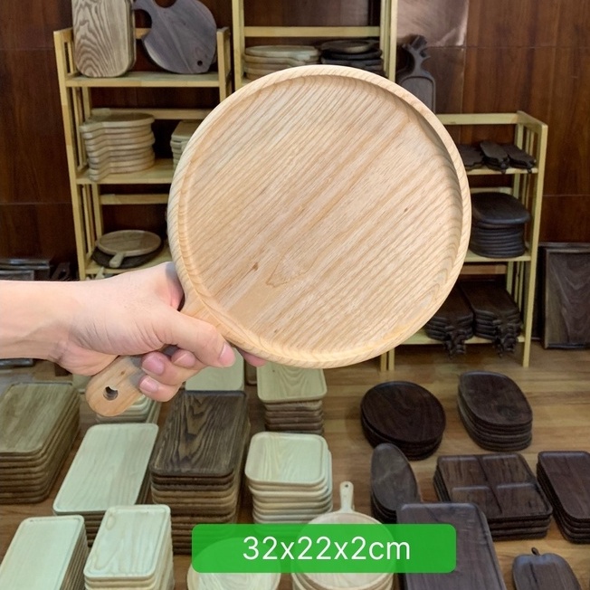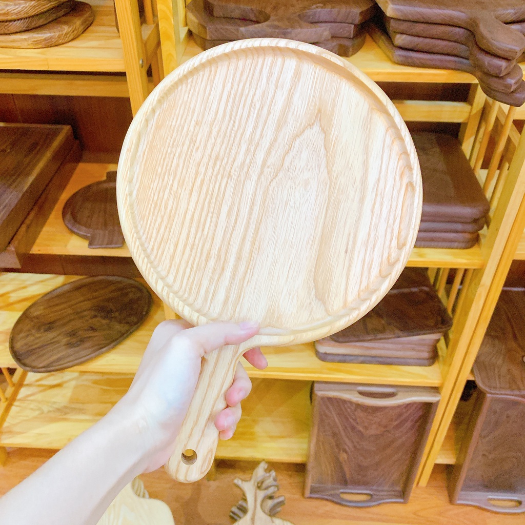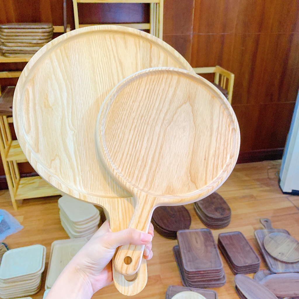 Khay gỗ đựng đồ ăn, bày pizza hình tròn tay cầm nhiều kích thước gỗ tần bì bày đồ ăn trang trí cực đẹp