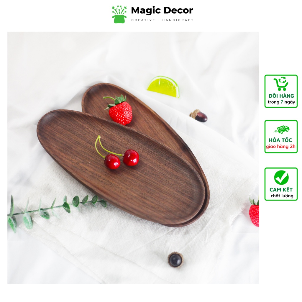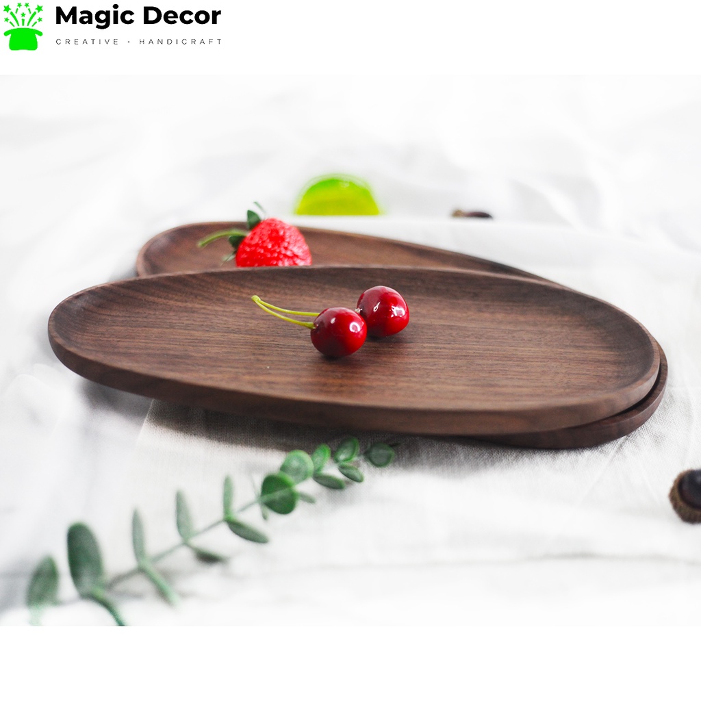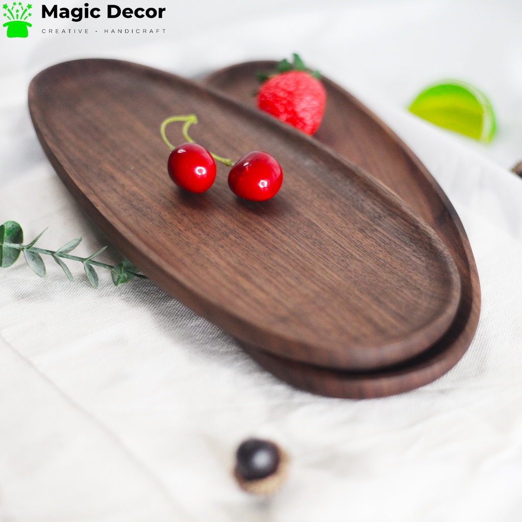 Nhà cửa & Đời sống > Bộ đồ bàn ăn > Khay, tấm lót bàn ăn || Khay gỗ decor hình elip đựng đồ ăn, trang trí, phụ kiện chụp ảnh đồ ăn sang trọng gỗ óc chó cao cấpCòn hàng