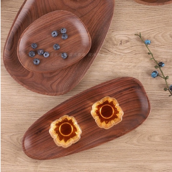 Khay gỗ decor đựng đồ ăn, trang trí hình elip phụ kiện chụp ảnh đồ ăn sang trọng gỗ óc chó cao cấp