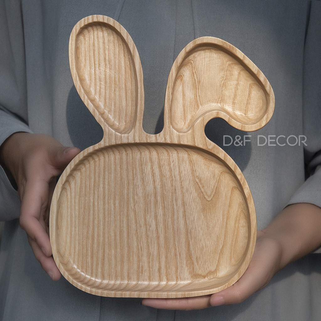 Khay Gỗ Decor hình Thỏ, Gỗ Tự Nhiên Thân Thiện Môi Trường