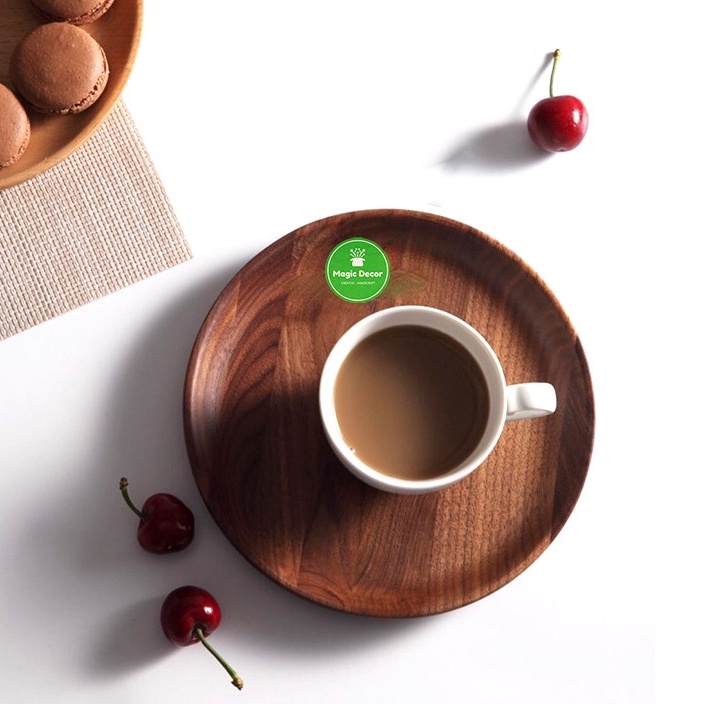 Nhà cửa & Đời sống > Bộ đồ bàn ăn > Khay, tấm lót bàn ăn || Khay gỗ decor hình tròn D22cm đựng đồ ăn trang trí làm phụ kiện chụp ảnh gỗ óc chó nguyên khối cao cấpCòn hàng