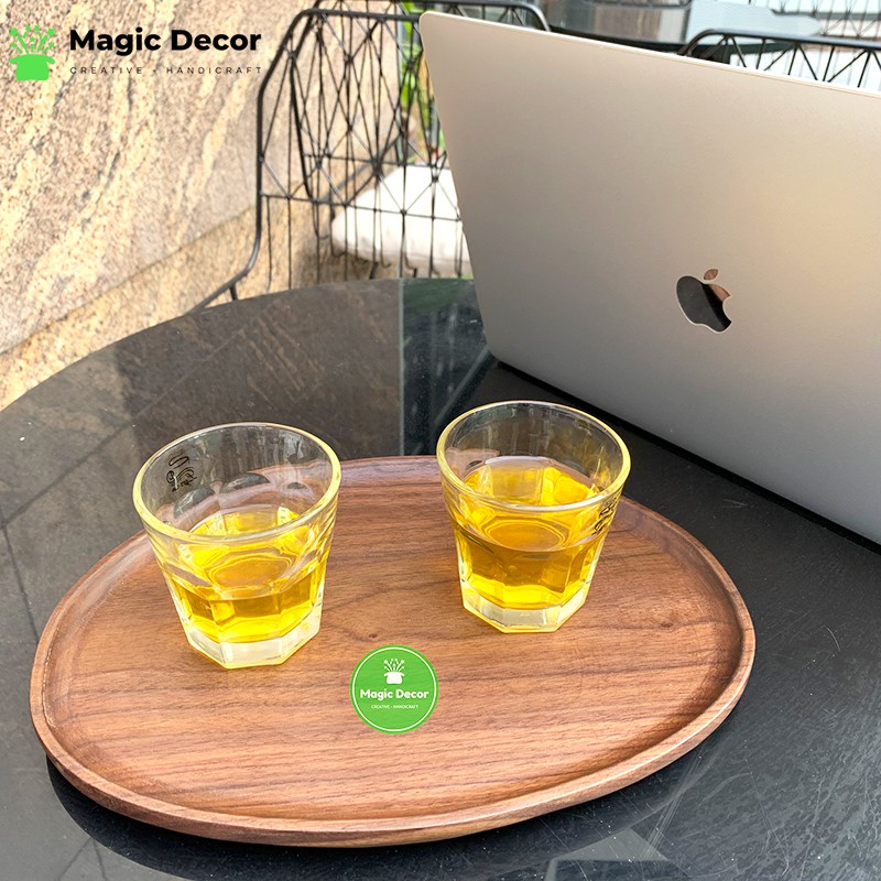 Nhà cửa & Đời sống > Bộ đồ bàn ăn > Khay, tấm lót bàn ăn || Khay gỗ decor, Khay trà đựng ấm chén gỗ óc chó cao cấp kích thước 33x25cmCòn hàng