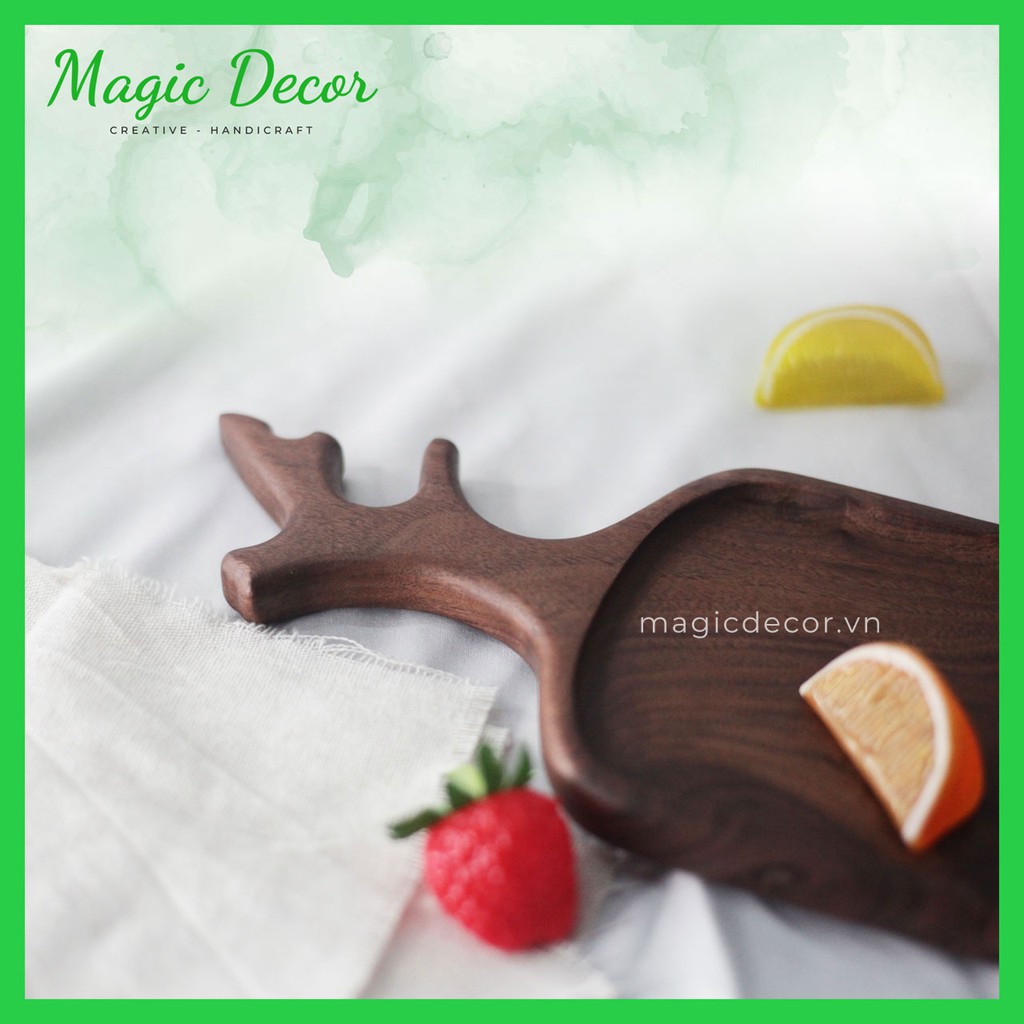 - Với thiết kế đơn giản mà tinh tế khay gỗ decor tay cầm sừng hươu được rất nhiều gia đình lựa chọn để đựng đồ ăn, bày trái cây