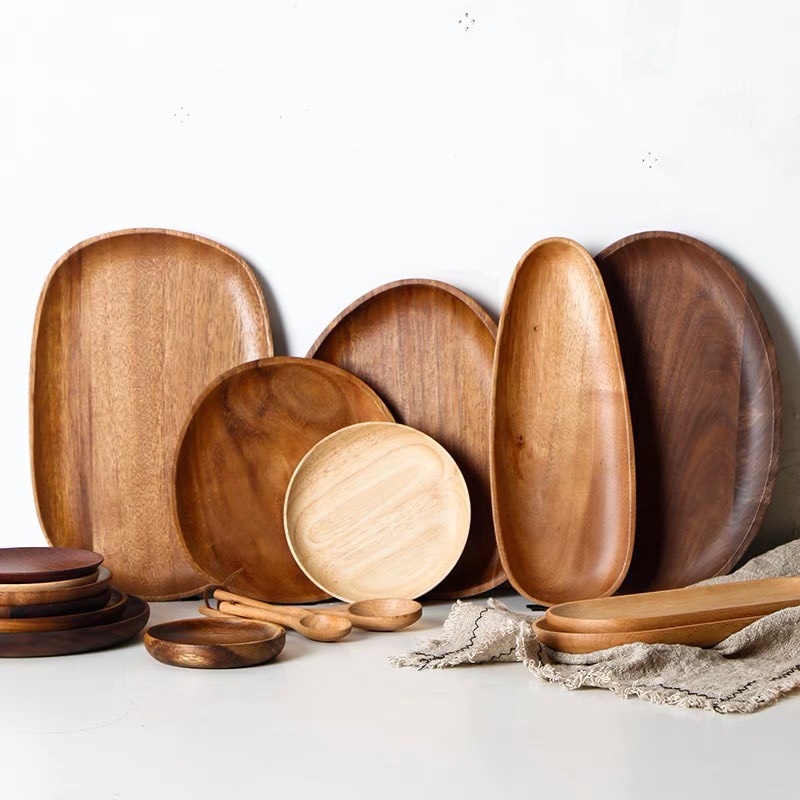 Khay Gỗ decor tự nhiên hình tròn, chữ nhật, vuông, Nhiều kích thước, gỗ tiện nguyên khối MinHome giá rẻ.