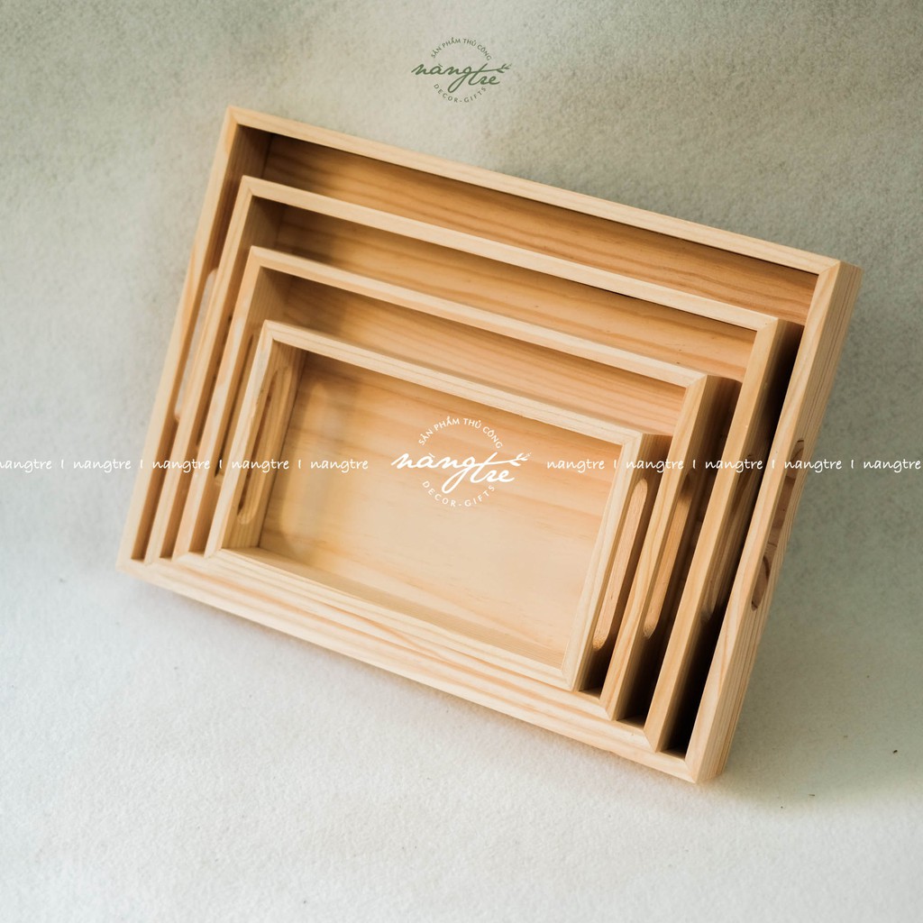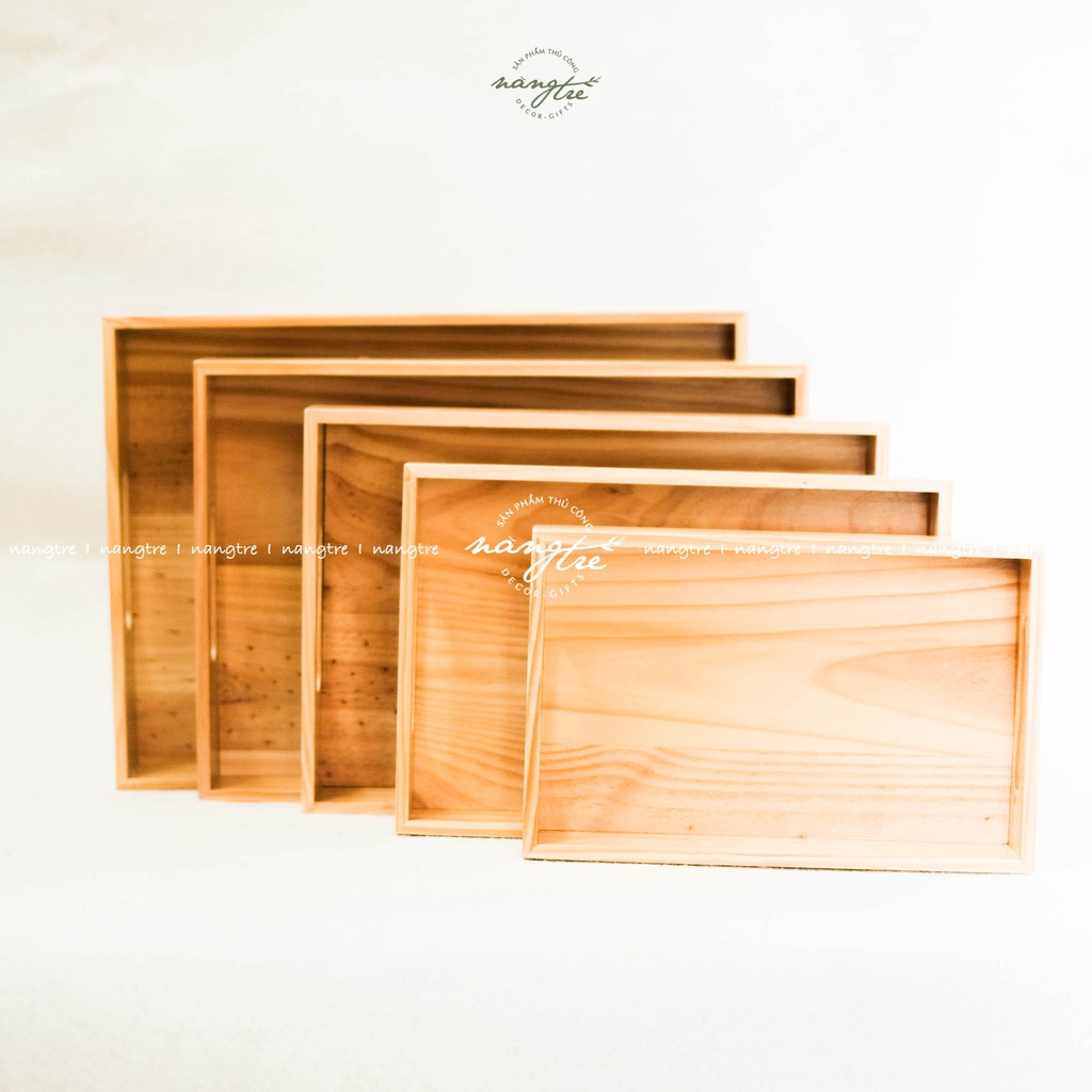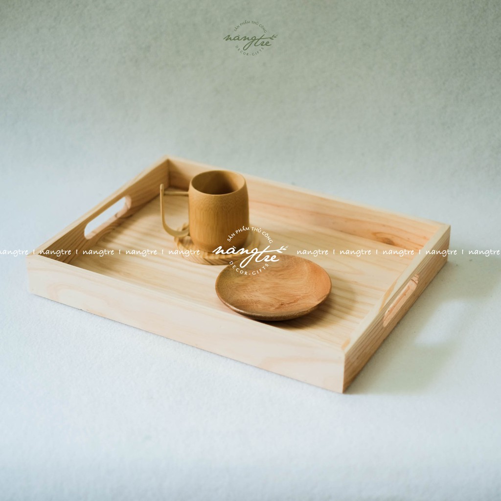 Khay gỗ đựng bánh, trà, khay gỗ tay cầm nhiều size- Được sản xuất từ gỗ thông nhập tự nhiên, vân gỗ tự nhiên mộc mạc, chống ẩm, nước
