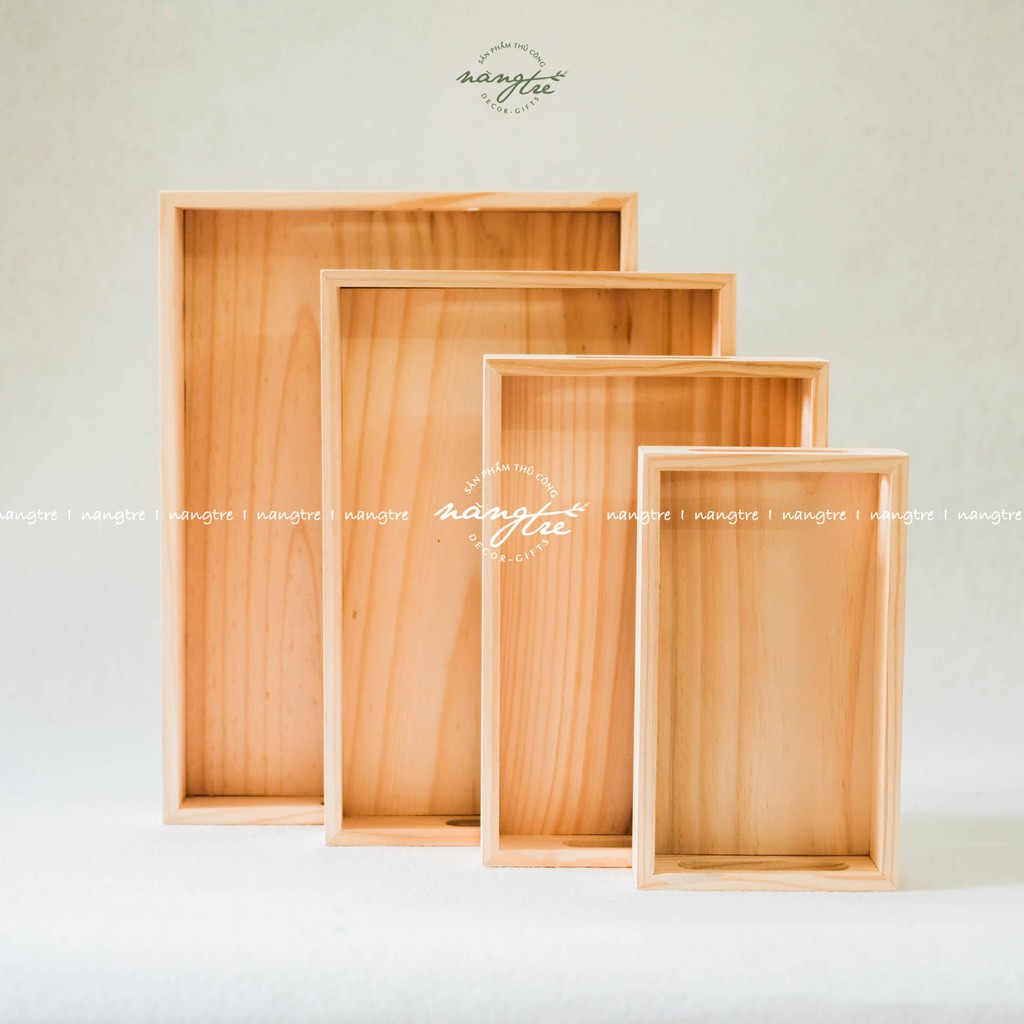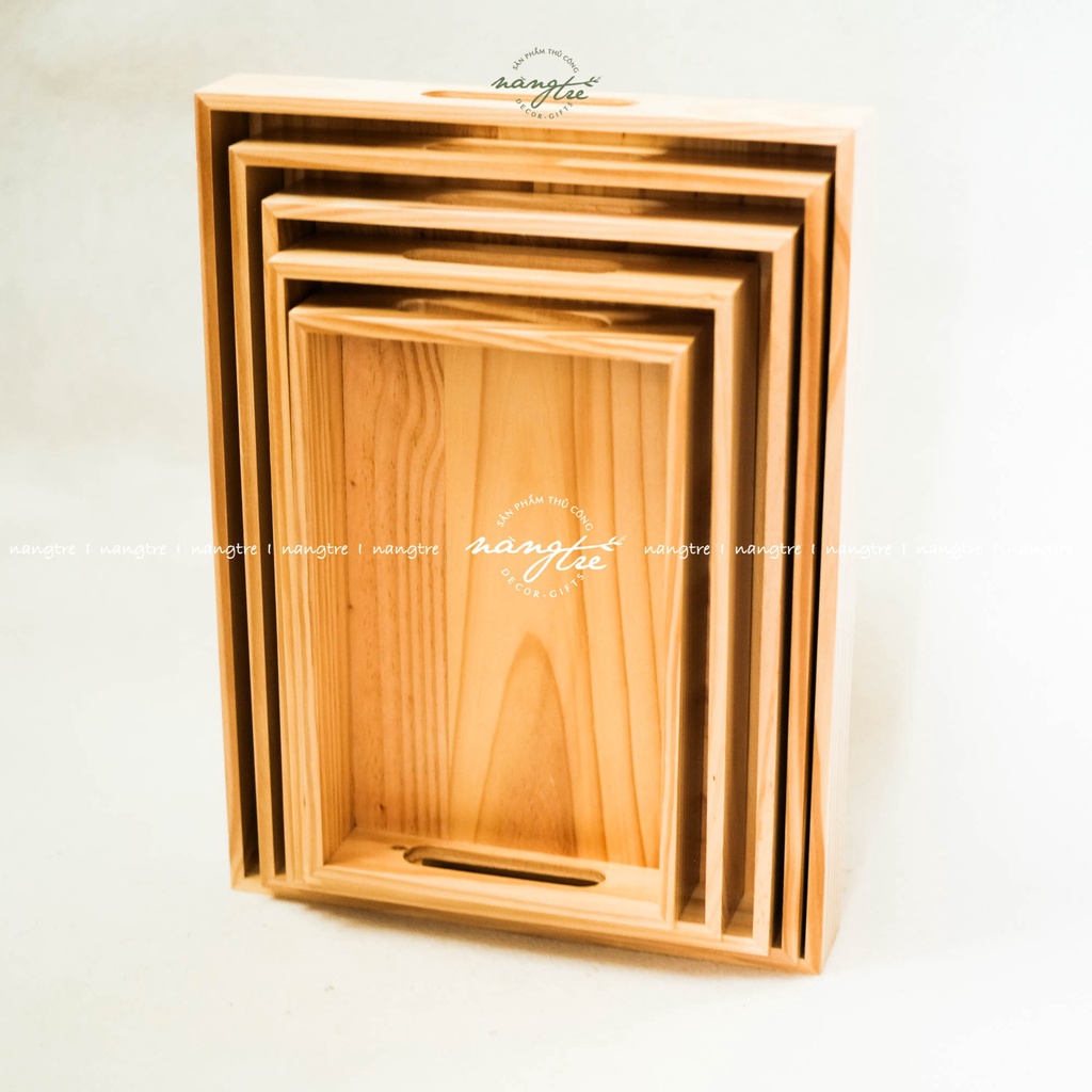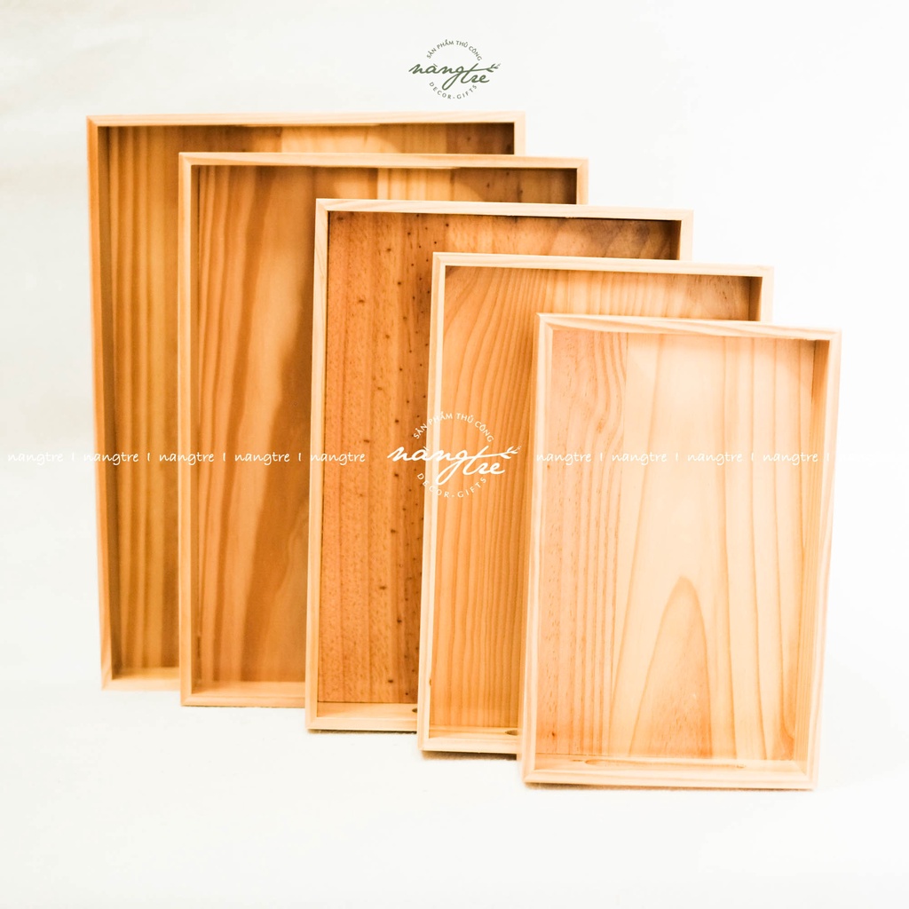 Khay gỗ đựng bánh, trà, khay gỗ tay cầm nhiều size- Được sản xuất từ gỗ thông nhập tự nhiên, vân gỗ tự nhiên mộc mạc, chống ẩm, nước