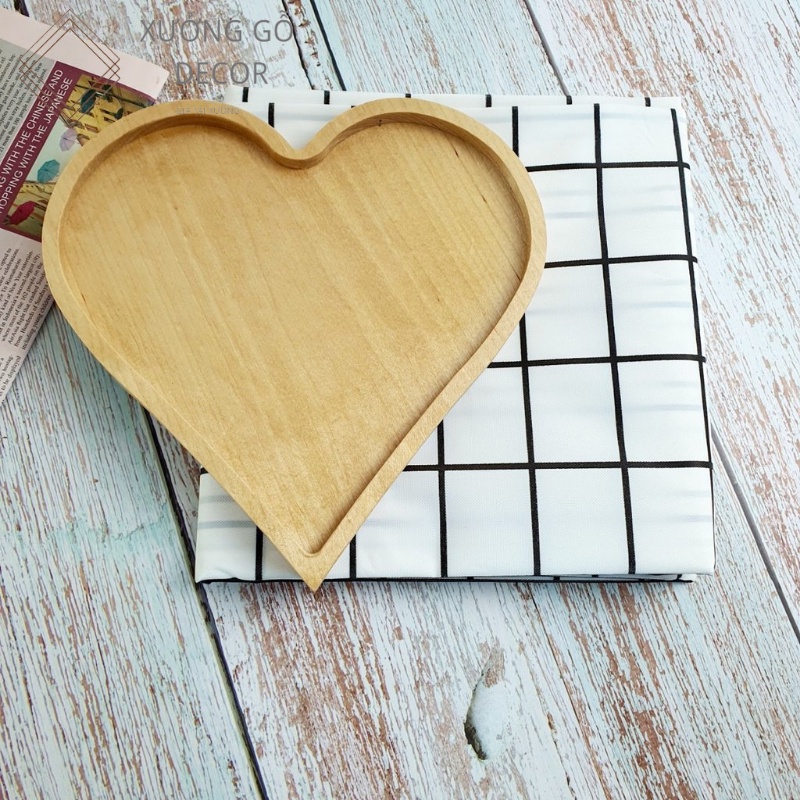 Khay Gỗ Decor Hình Trái Tim, Gỗ Tự Nhiên Thân Thiện Môi Trường, Có Phủ Chống Thấm.