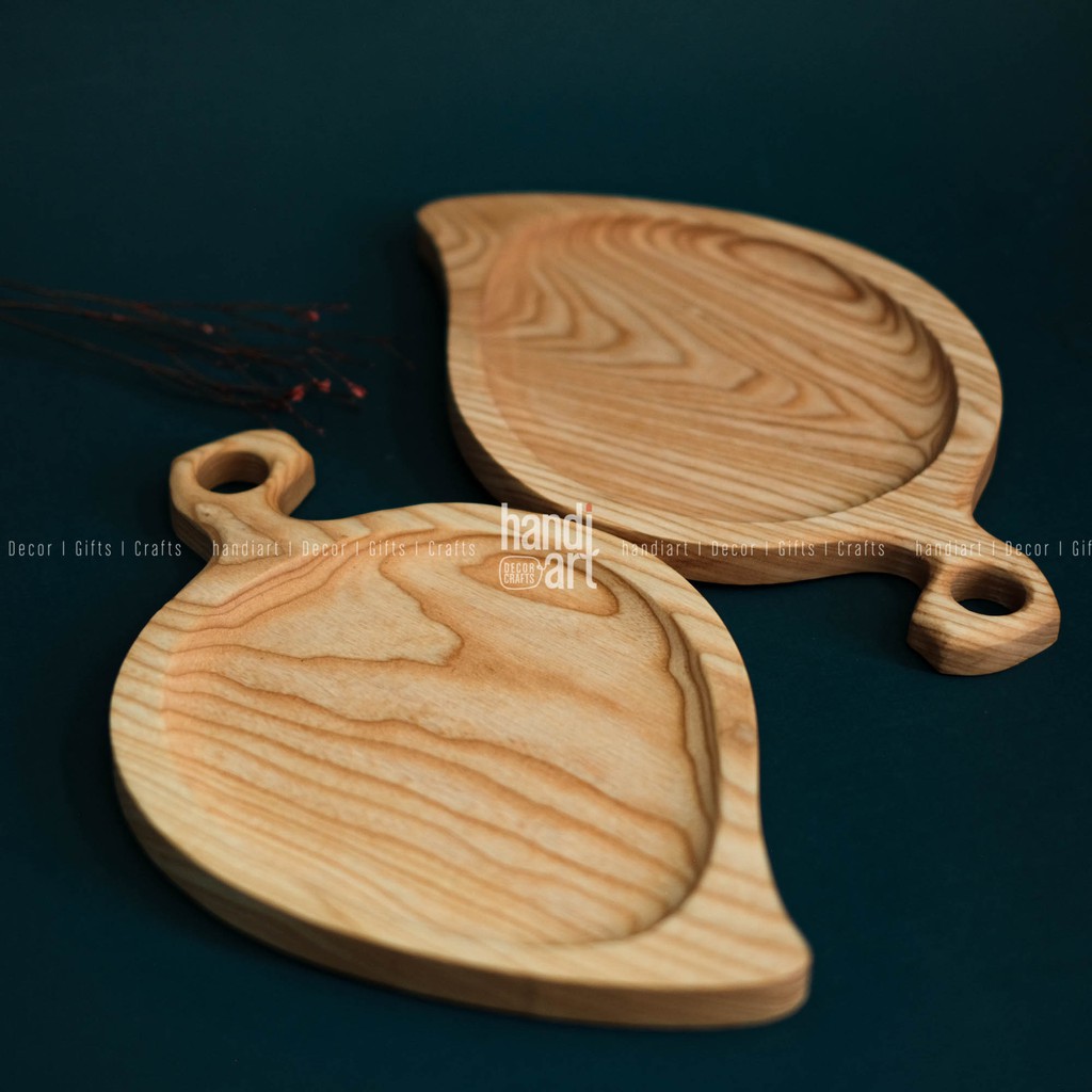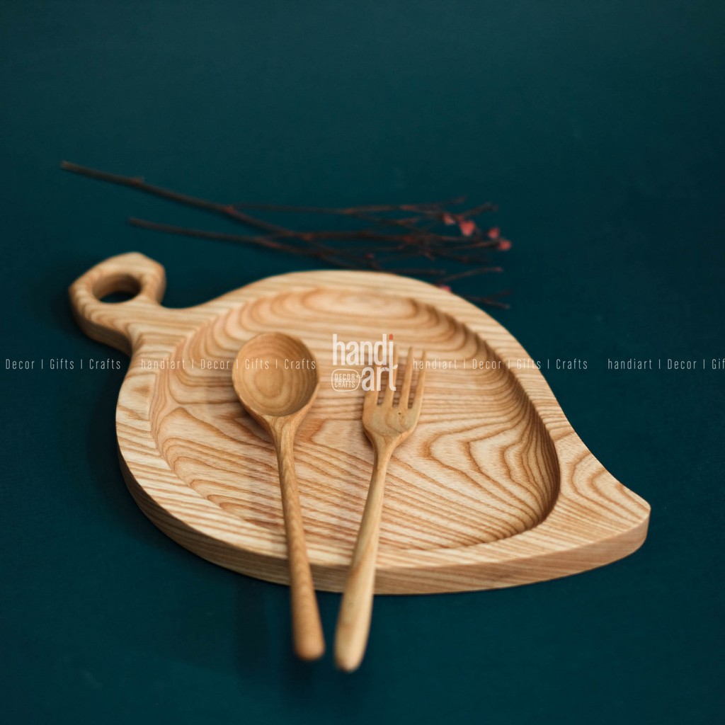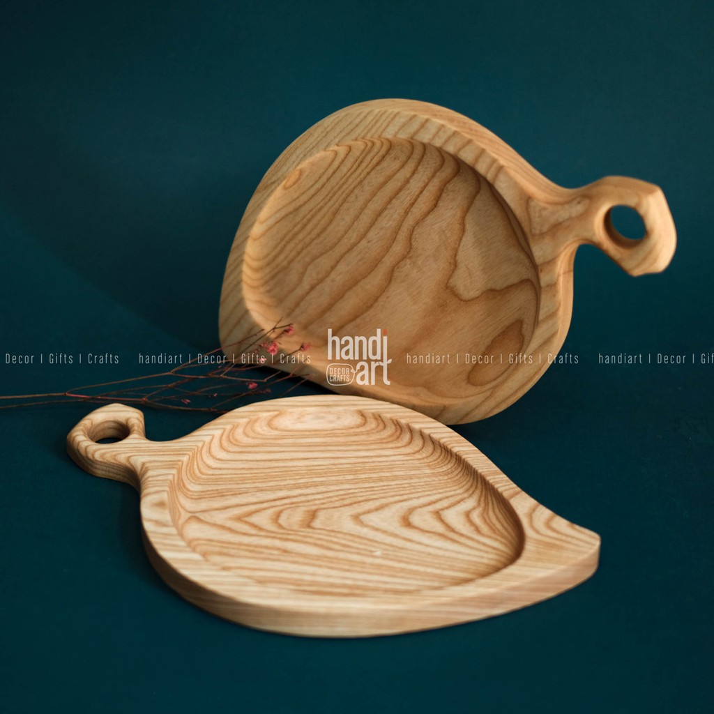 Khay gỗ hình chiếc lá - Wooden tray- Được sản xuất từ gỗ tần bì nguyên khối, có màu sáng, trọng lượng nhẹ, vân gỗ tự nhiên, phủ dầu oliu.