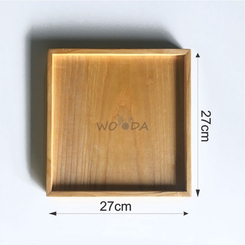 Kích thước: (sản phẩm được làm từ gỗ tự nhiên, đáy gỗ và thành gỗ đều dày 1cm)- Vuông: (DxRxC) 27x27x2cm