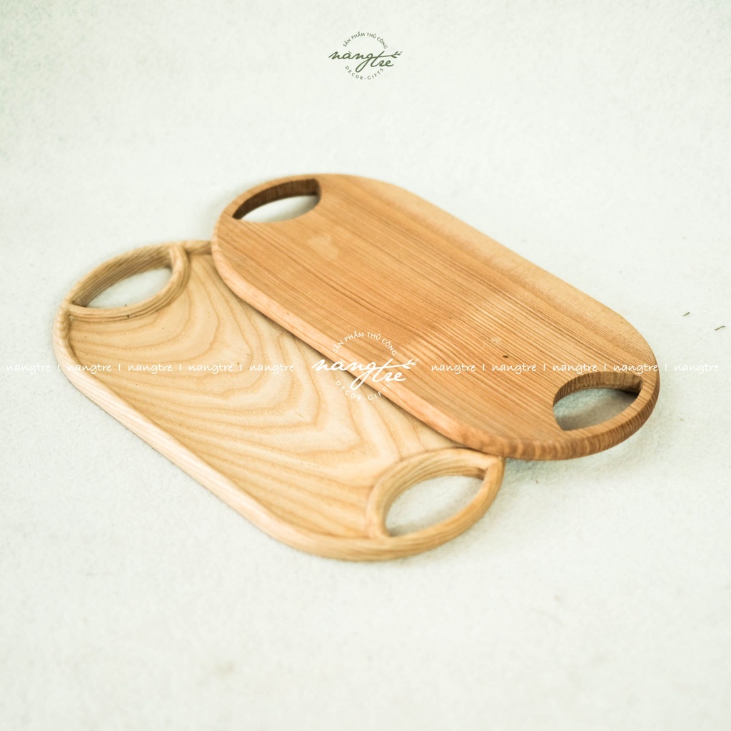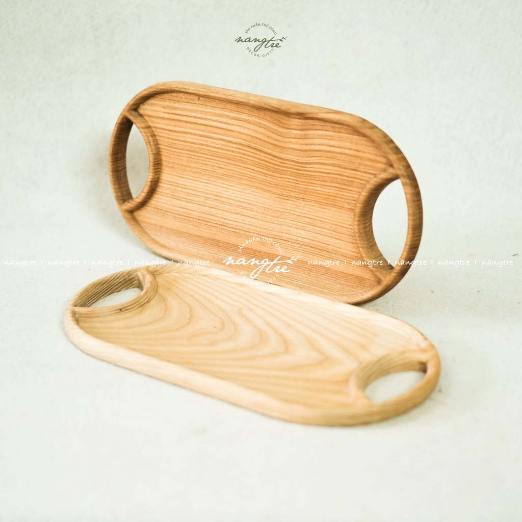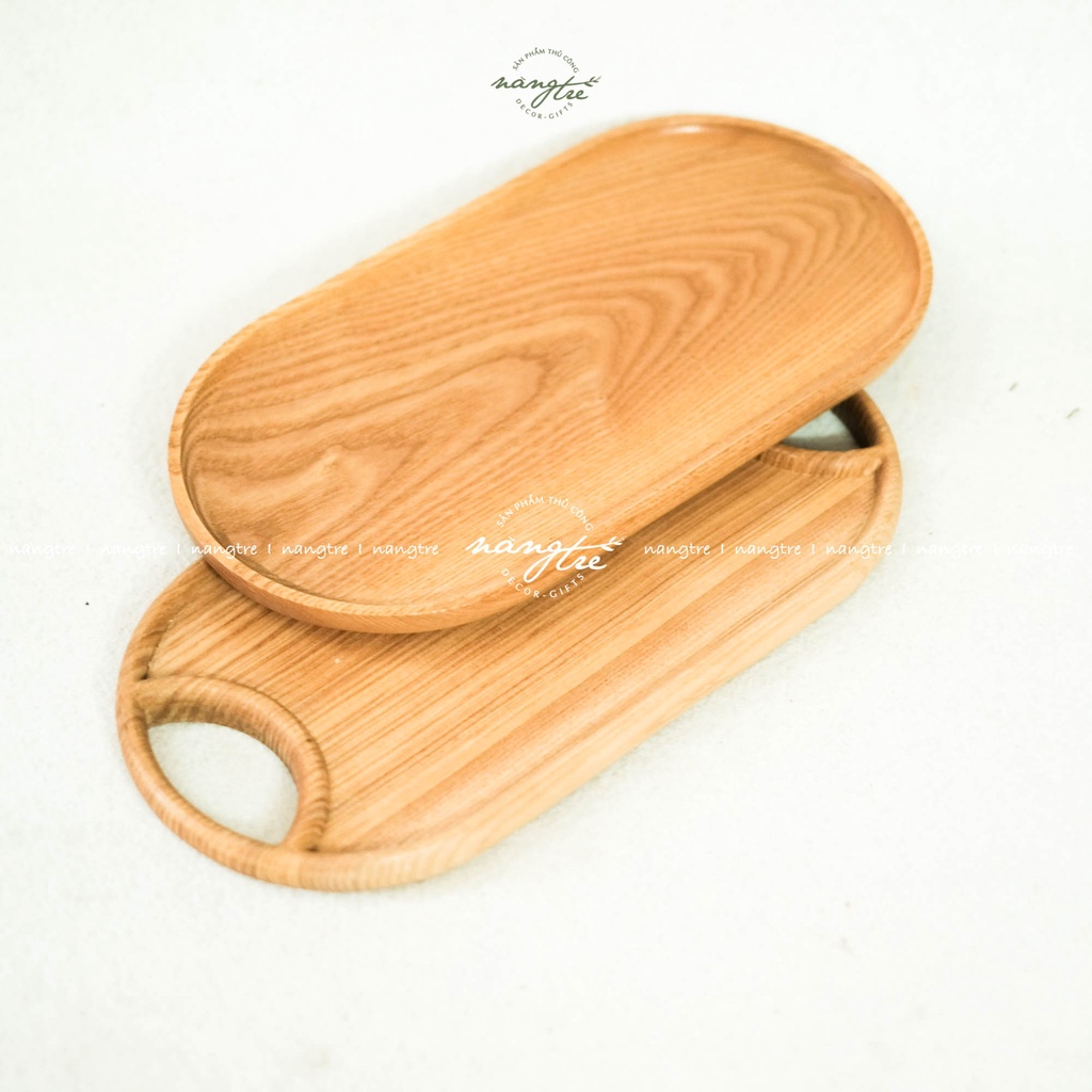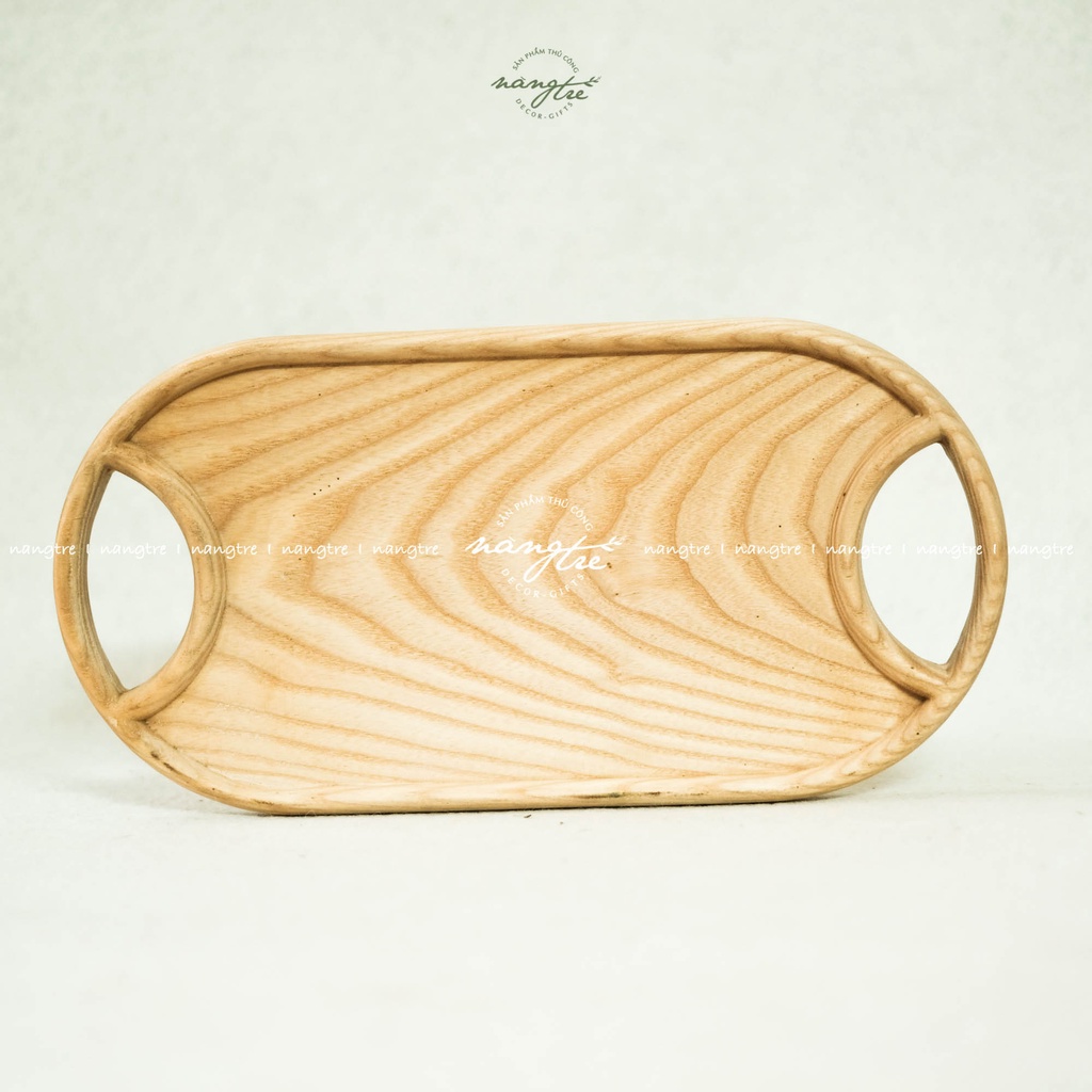 Khay gỗ decor hình Oval tay nắm- Được sản xuất từ gỗ tần bì nguyên khối, có màu sáng, trọng lượng nhẹ, vân gỗ tự nhiên, phủ dầu oliu.