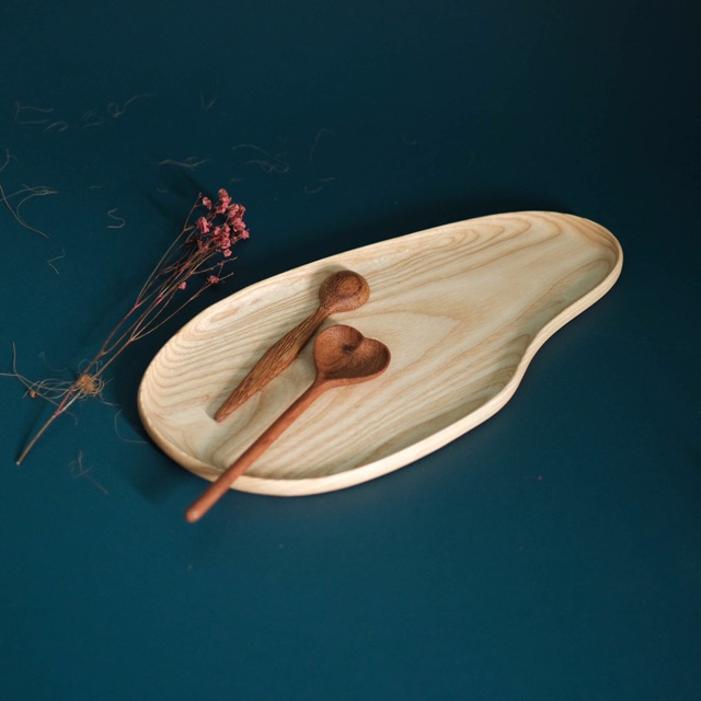 Khay gỗ hình trái xoài - Khay gỗ đựng đồ ăn- Được sản xuất từ gỗ tần bì nguyên khối, có màu sáng, trọng lượng nhẹ, vân gỗ tự nhiên, phủ dầu oliu.
