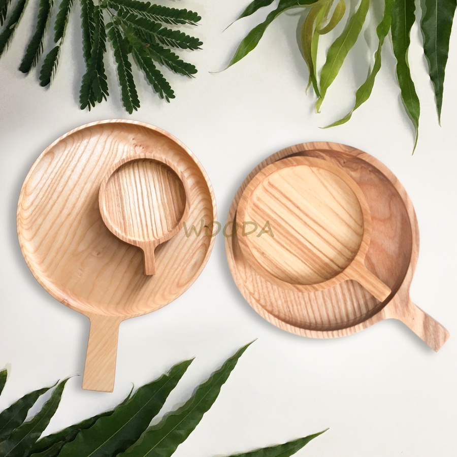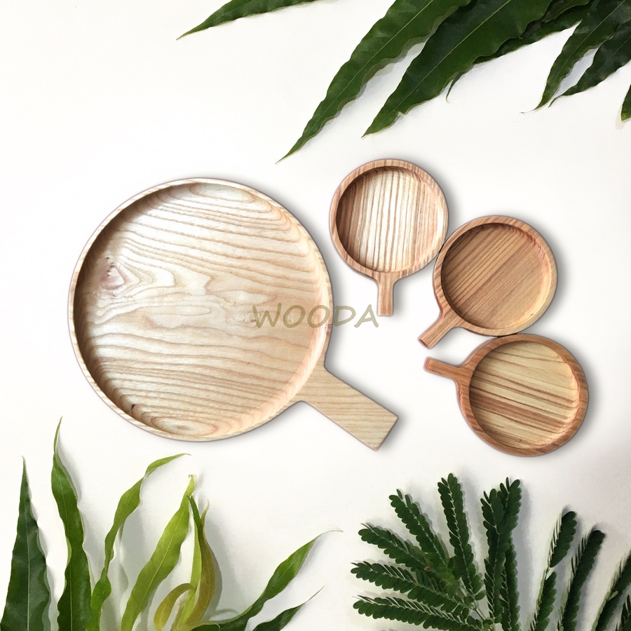 [Mã LIFE1404ALL giảm 10% đơn 50K] Khay gỗ hình tròn có tay cầm