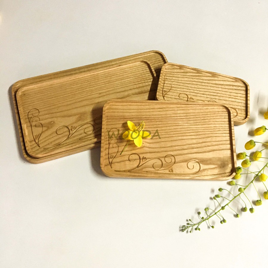 Khay Gỗ Hoa Văn Hình Chữ Nhật - Khay Gỗ Decor