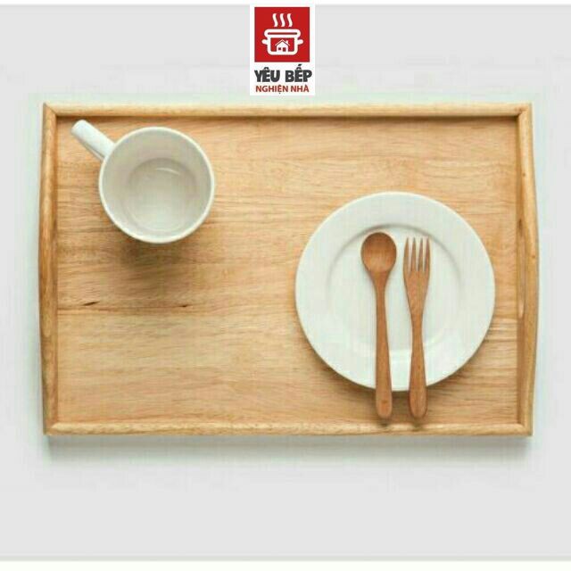 Khay Gỗ Lớn Cao Su Tự Nhiên Hình Chữ Nhật Có Tay Cầm 23701
