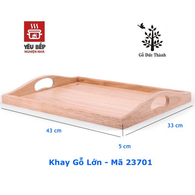 - Khay đáy gỗ hình chữ nhật kíchc thước lớn có tay cầm oval được thiết kế với bề mặt rộng, có thể sử dụng với nhiều mục đích khác nhau. Được làm từ gỗ cao su với vân gỗ sáng đẹp,