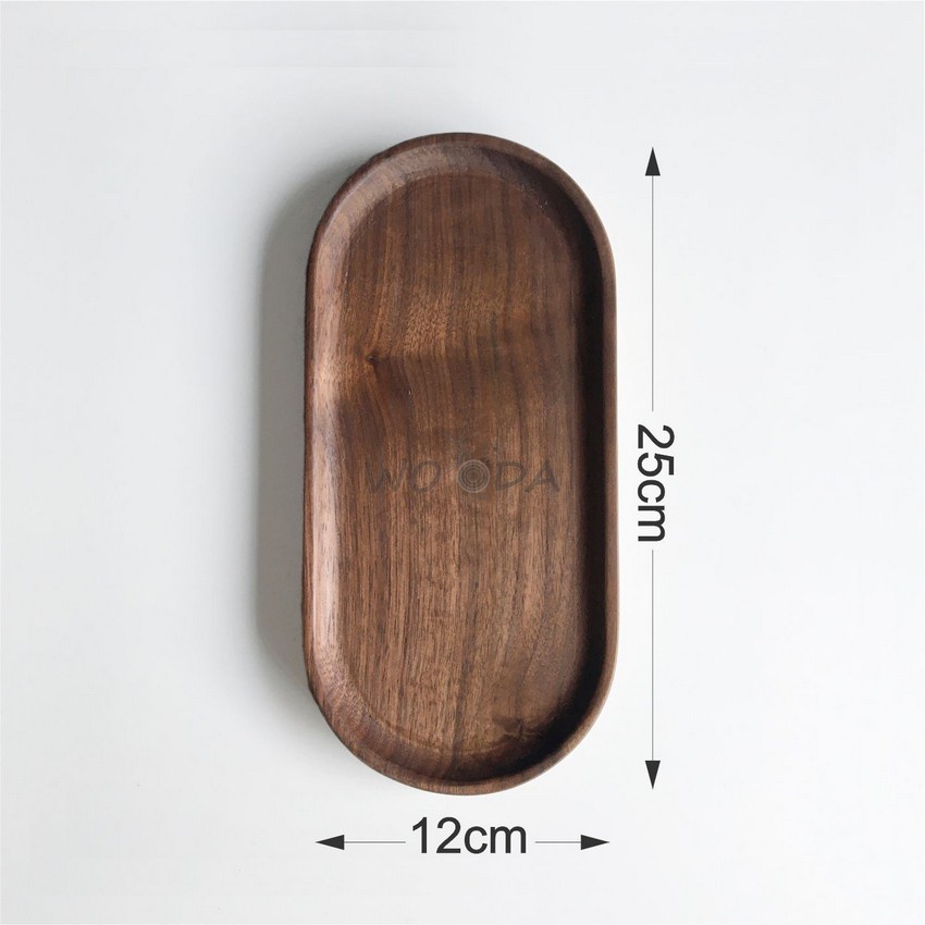 Giới thiệu Khay gỗ óc chó (walnut) nguyên khối cao cấp hình oval, khay đựng thực phẩm, khay trà
