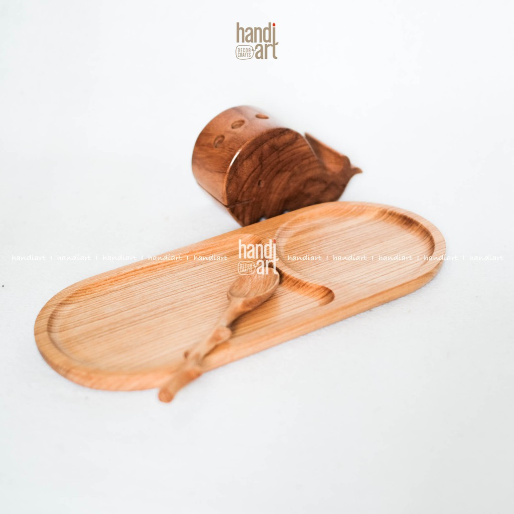 Khay gỗ oval 2 ngăn, Khay đựng thức ăn