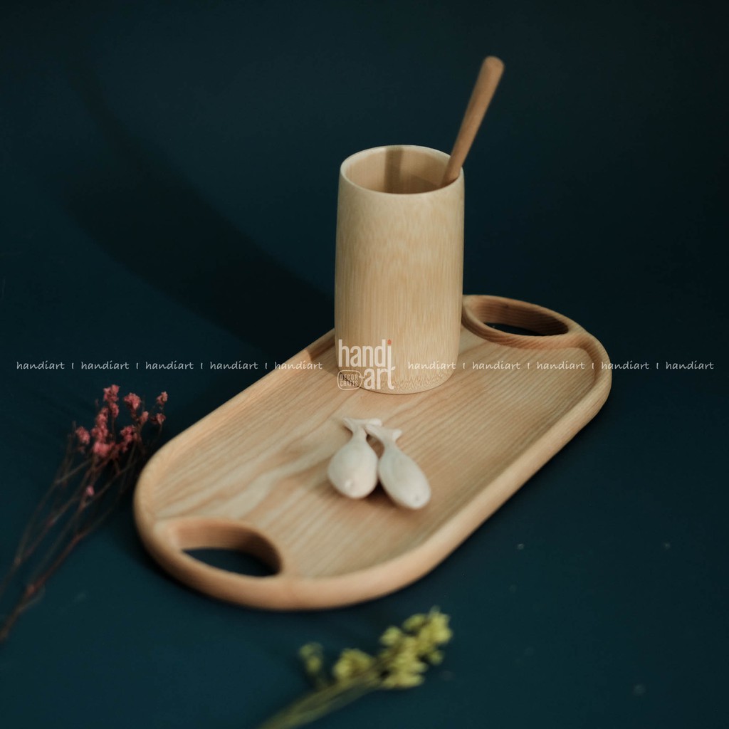 * Đóng gói: 1 khay gỗ hình Oval tay nắm