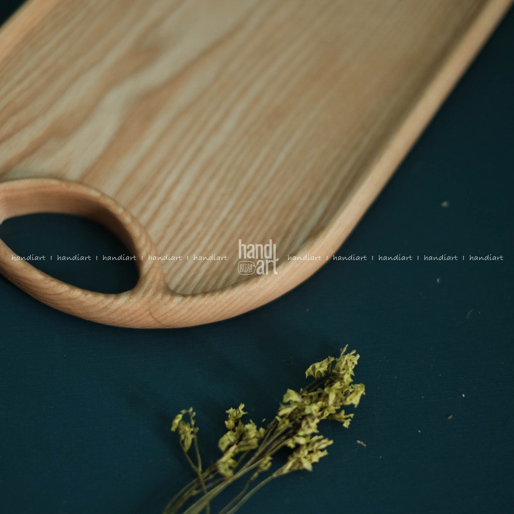 Khay gỗ decor hình Oval tay nắm- Được sản xuất từ gỗ tần bì nguyên khối, có màu sáng, trọng lượng nhẹ, vân gỗ tự nhiên, phủ dầu oliu.