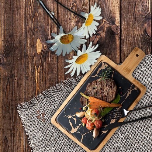 Giới thiệu Khay gỗ phối đĩa sứ vân đá cẩm thạch - Đựng bò bít tết, pizza cực tinh tế và sang trọng