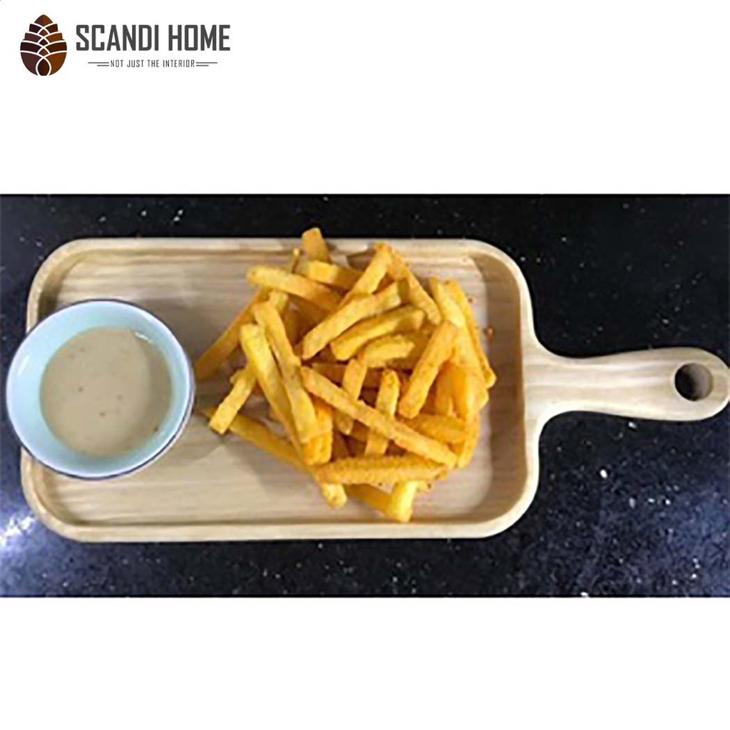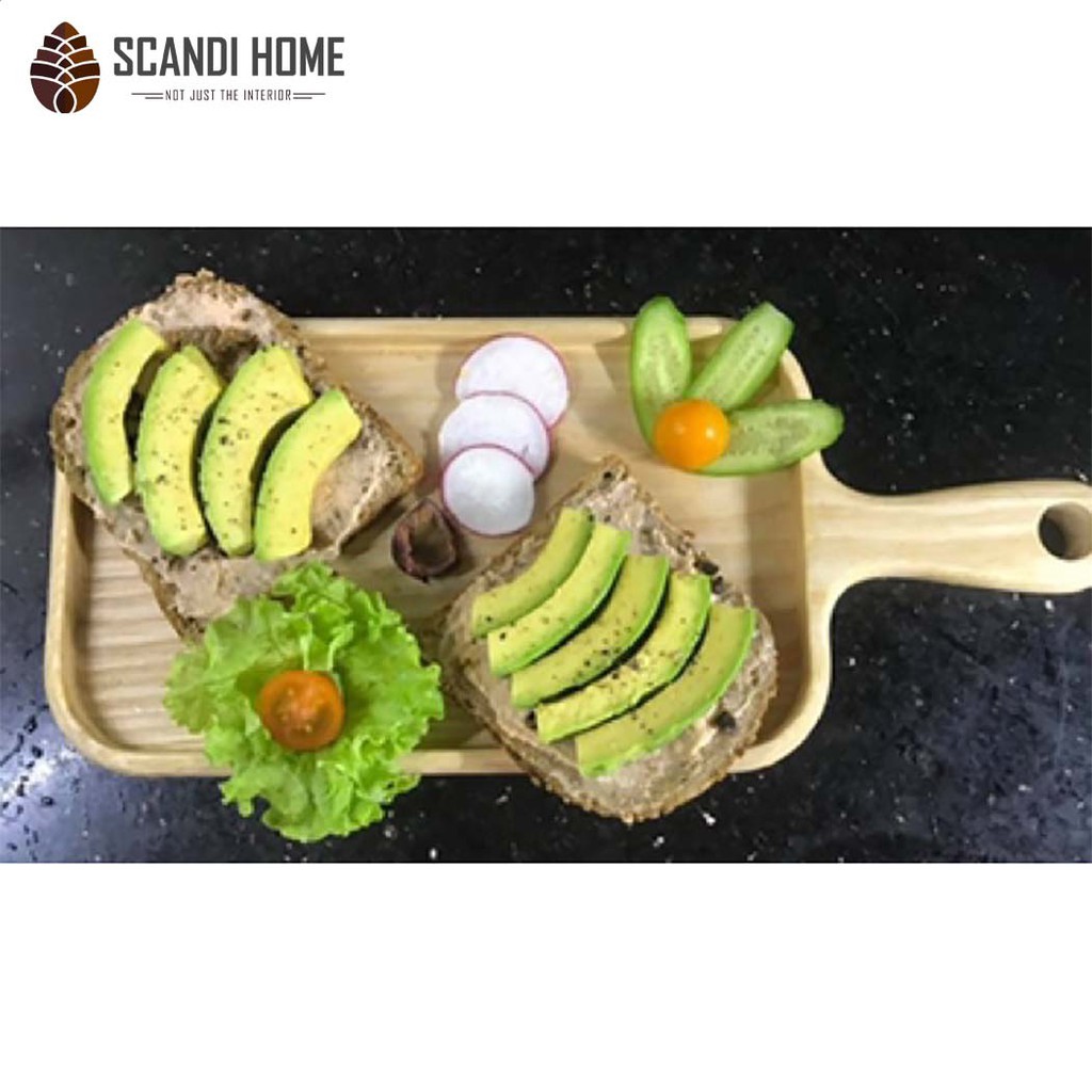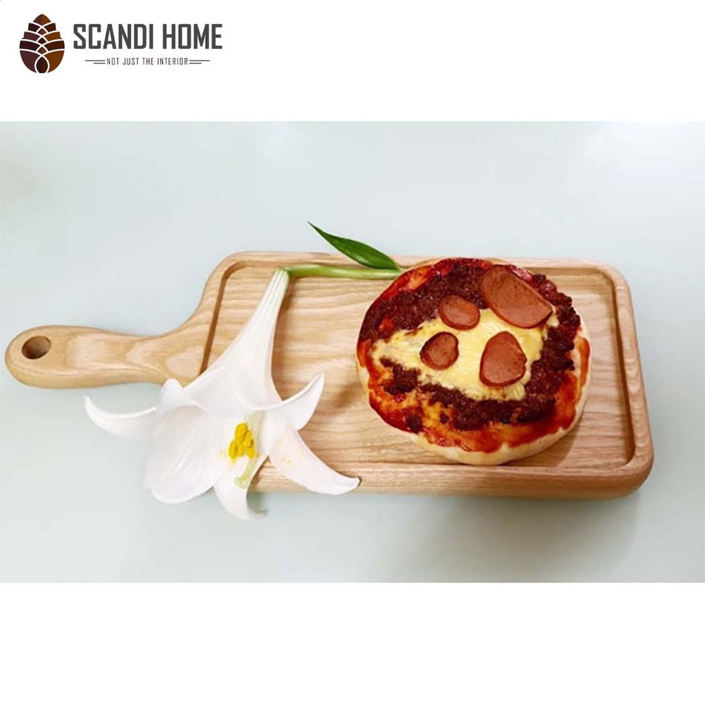 Giới thiệu Khay Gỗ Sồi Chữ Nhật Scandi Home Bo Cong Viền Có Chuôi Cầm Đựng Đồ Ăn Cao Cấp