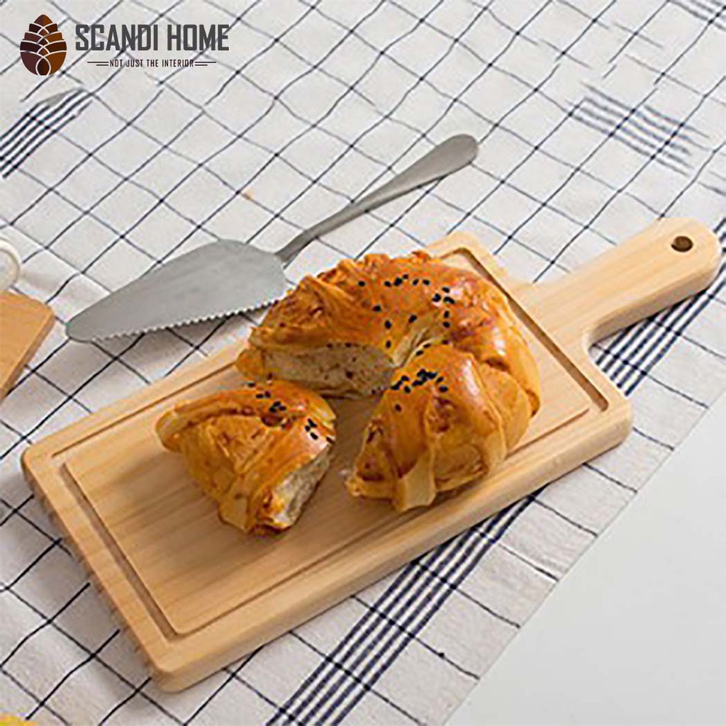 Nhà cửa & Đời sống > Nội thất > Bàn || Khay Gỗ Sồi Chữ Nhật Scandi Home Bo Cong Viền Có Chuôi Cầm Đựng Đồ Ăn Cao CấpCòn hàng