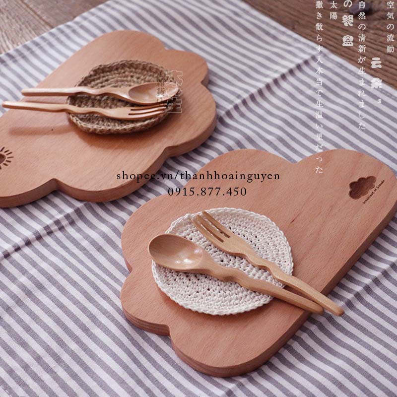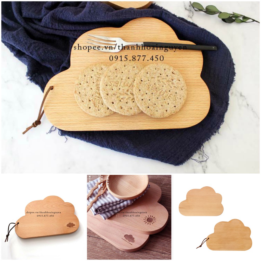 Khay gỗ sồi nguyên tấm hình đám mây xinh xắn decor chụp ảnh ( Khay đám mây đựng đồ tráng miệng ăn sáng Breadboand )Kích thước: 23*16.5*1.5cm