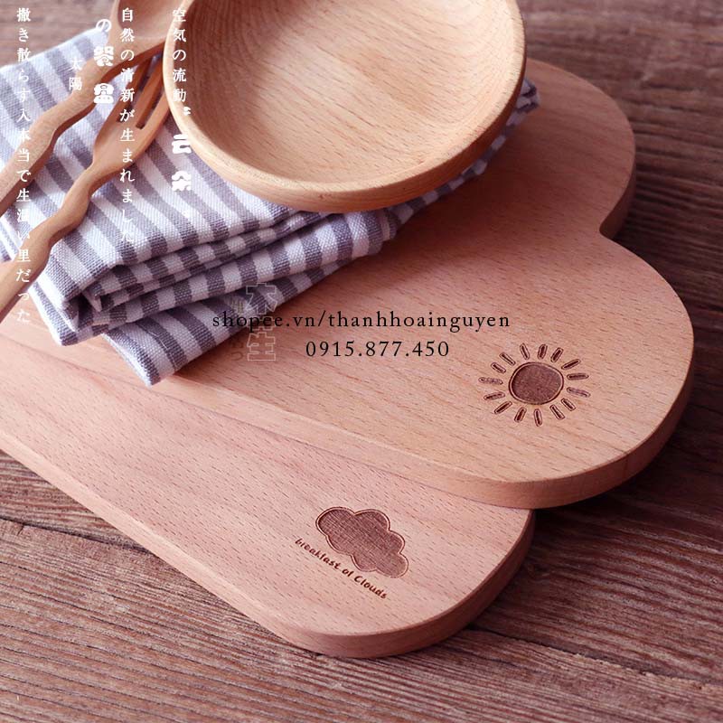 Khay gỗ sồi nguyên tấm hình đám mây xinh xắn đựng đồ tráng miệng ăn sáng Breadboand decor chụp ảnh