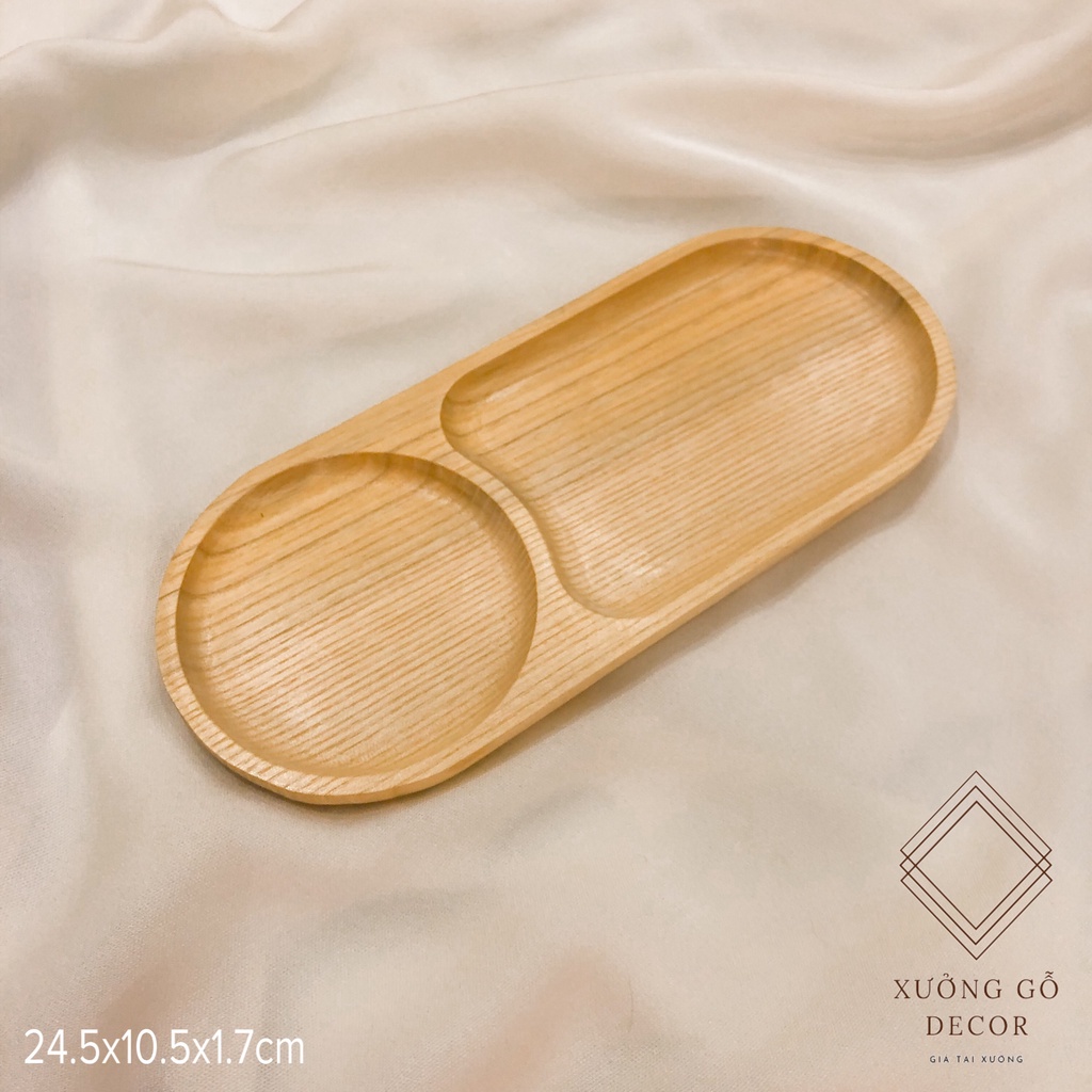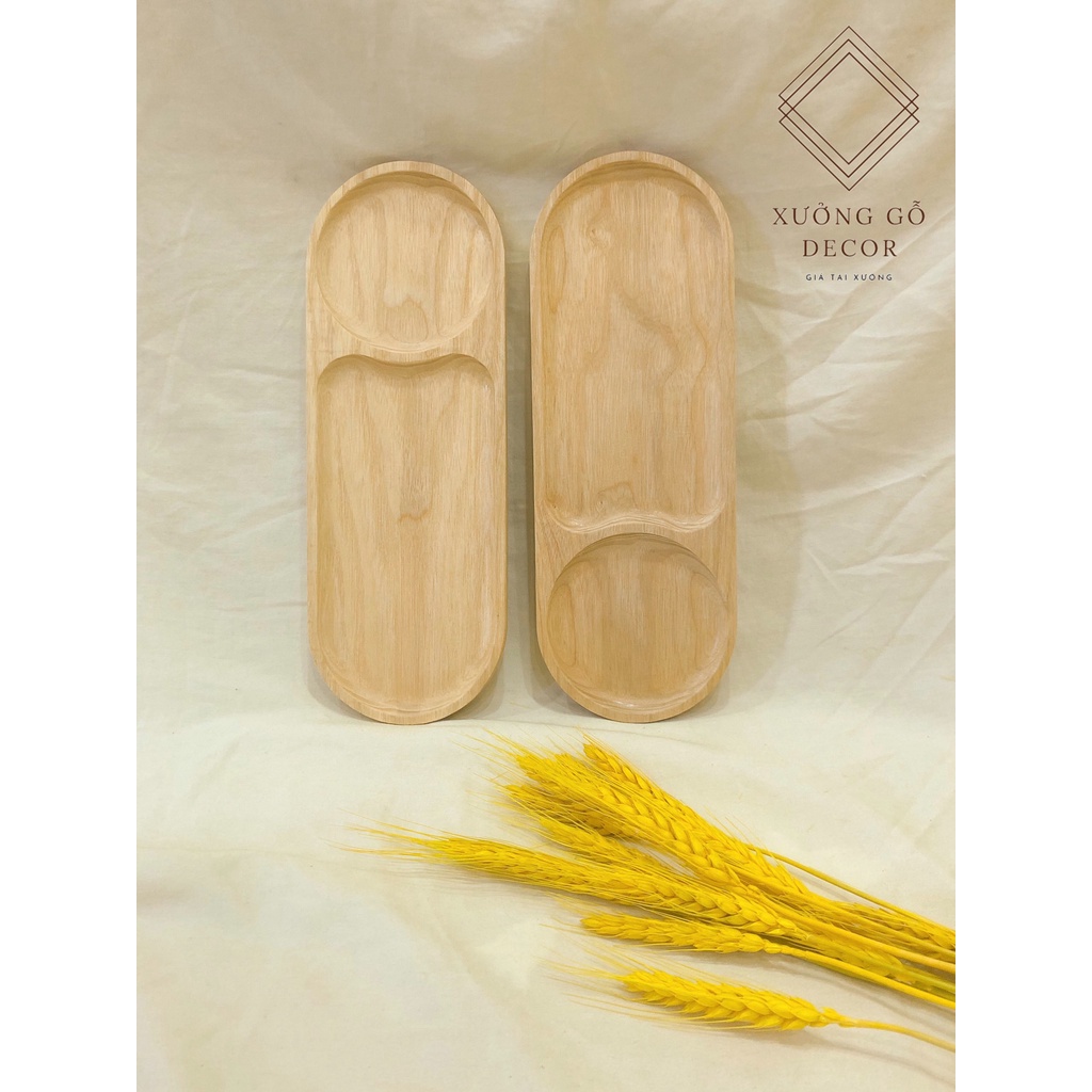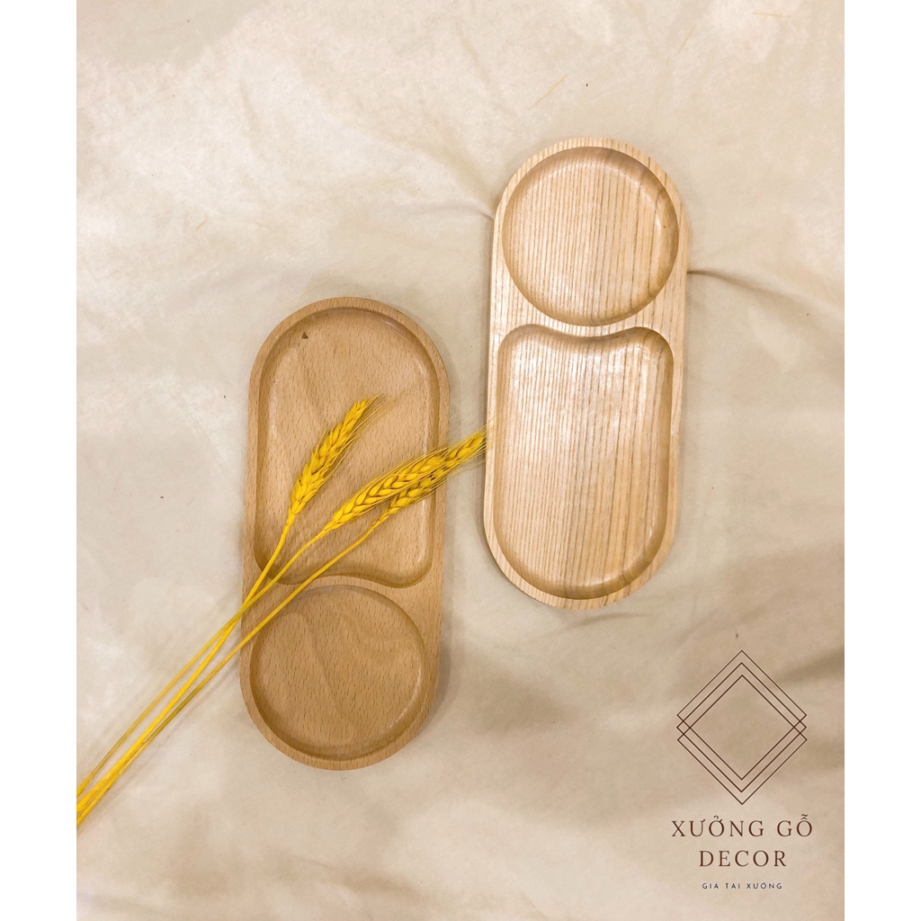 Nhà cửa & Đời sống > Bộ đồ bàn ăn > Khay, tấm lót bàn ăn || Khay Gỗ Tần Bì Hình Oval 2 Ngăn ,Khay đựng thức ăn [Bán buôn/ Sỉ]Còn hàng