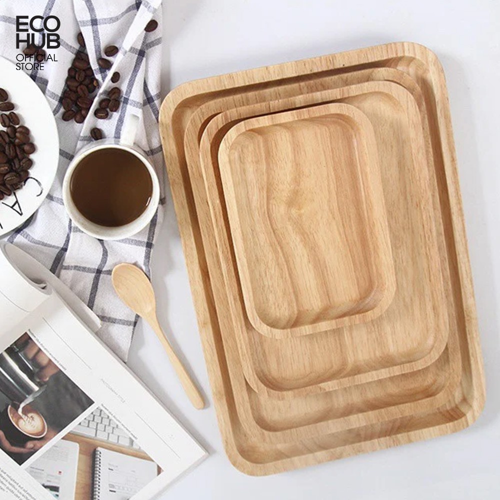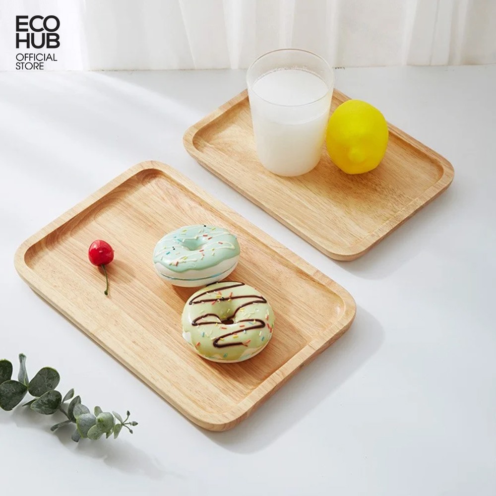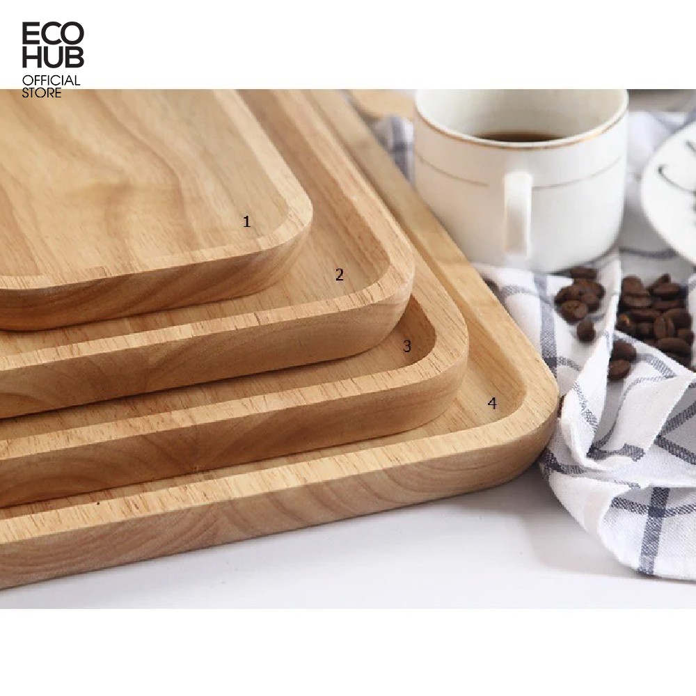 Khay gỗ Tần Bì ECOHUB Chữ nhật / Vuông / Tròn nguyên khối, Đựng đồ ăn, màu tự nhiên (Nhiều Size) | EH019