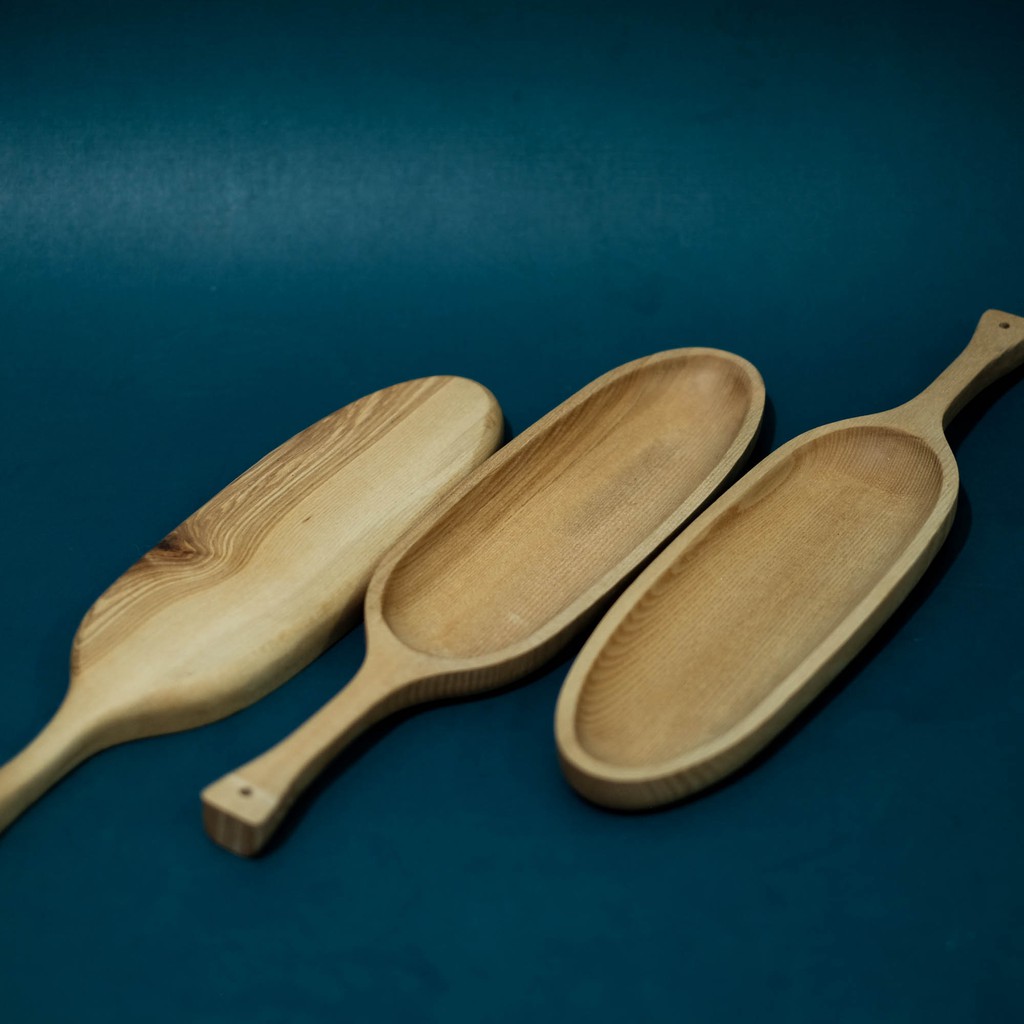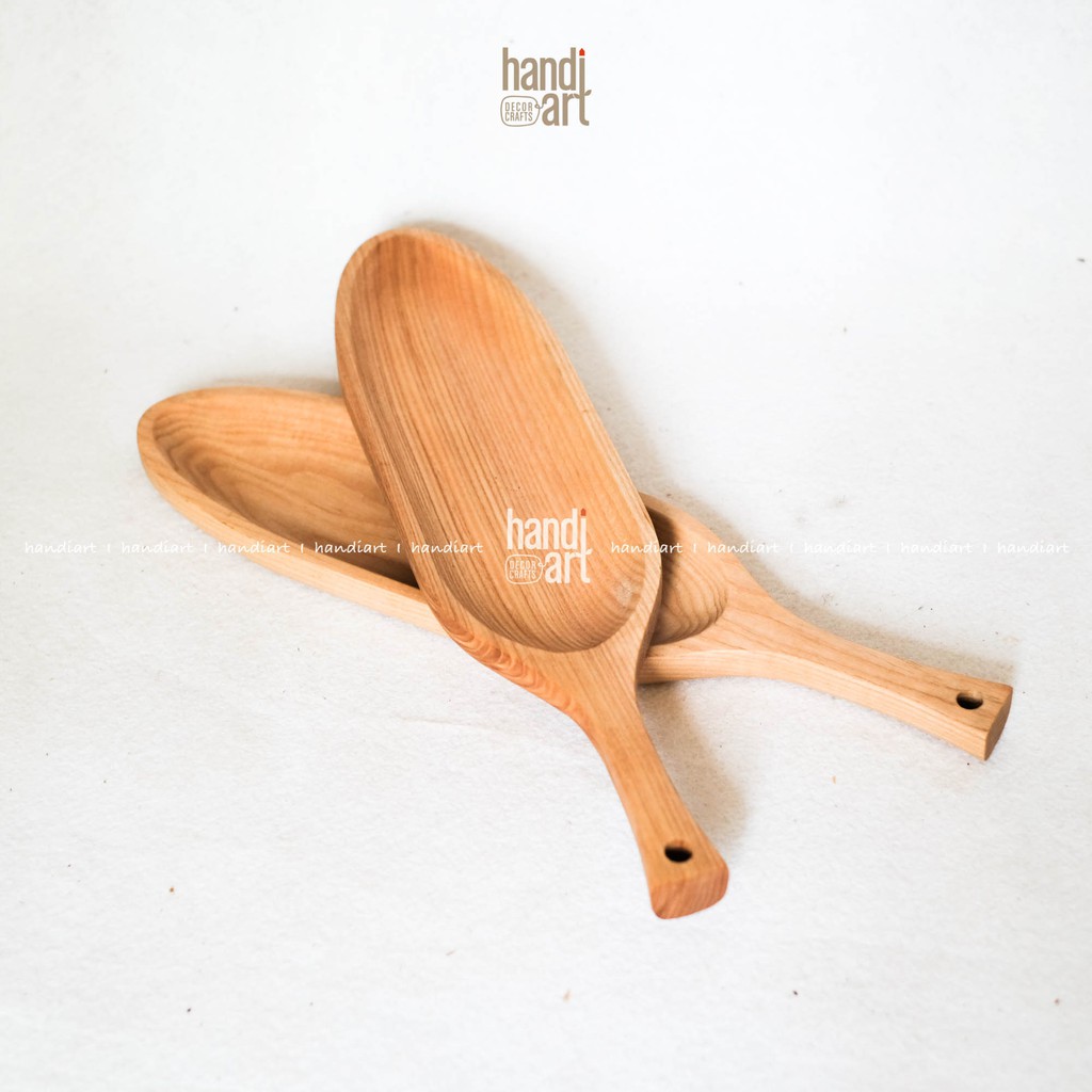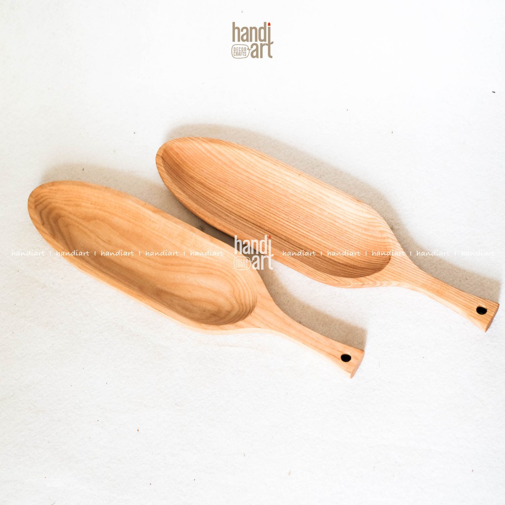 Khay gỗ tay cầm hình trái bí- Được làm từ gỗ tần bì nguyên khối, có màu sáng, trọng lượng nhẹ và vân gỗ tự nhiên, phủ dầu oliu