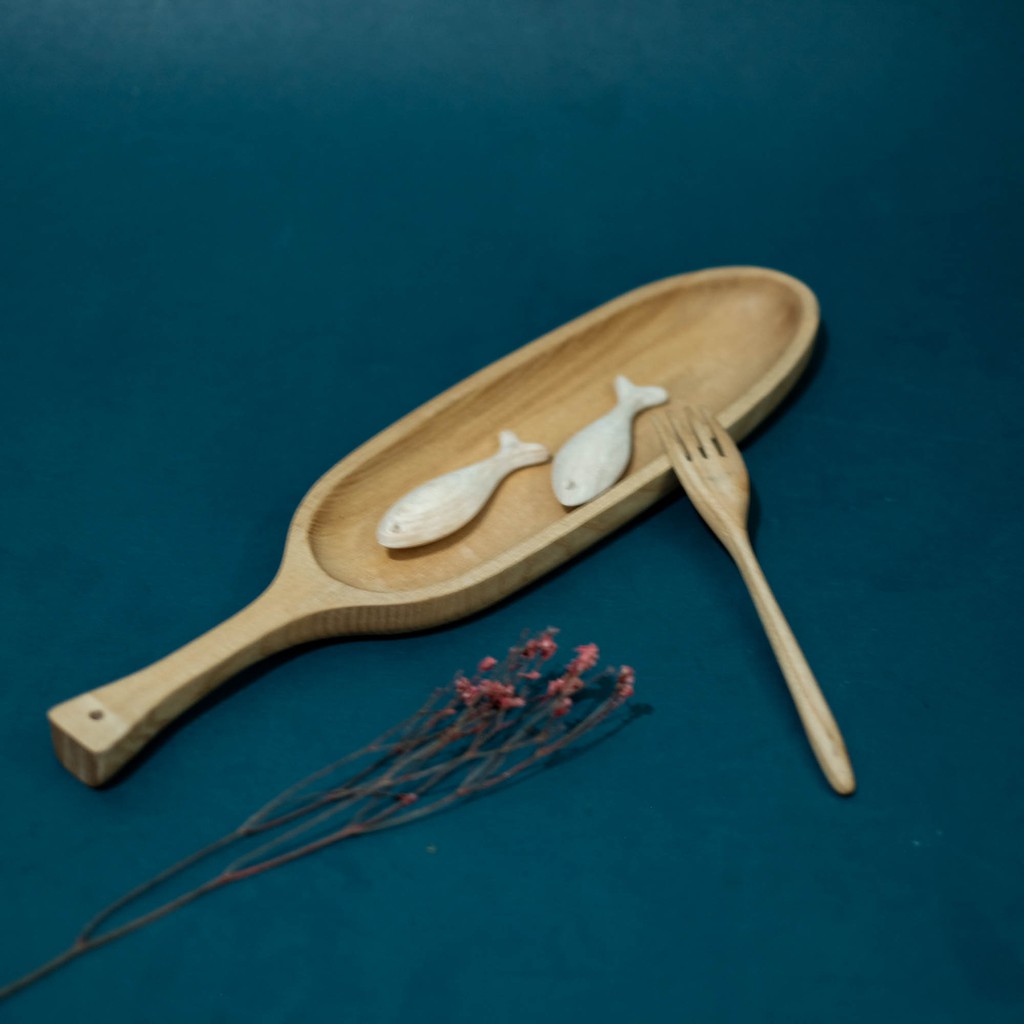 Khay gỗ tay cầm hình trái bí, wooden tray
