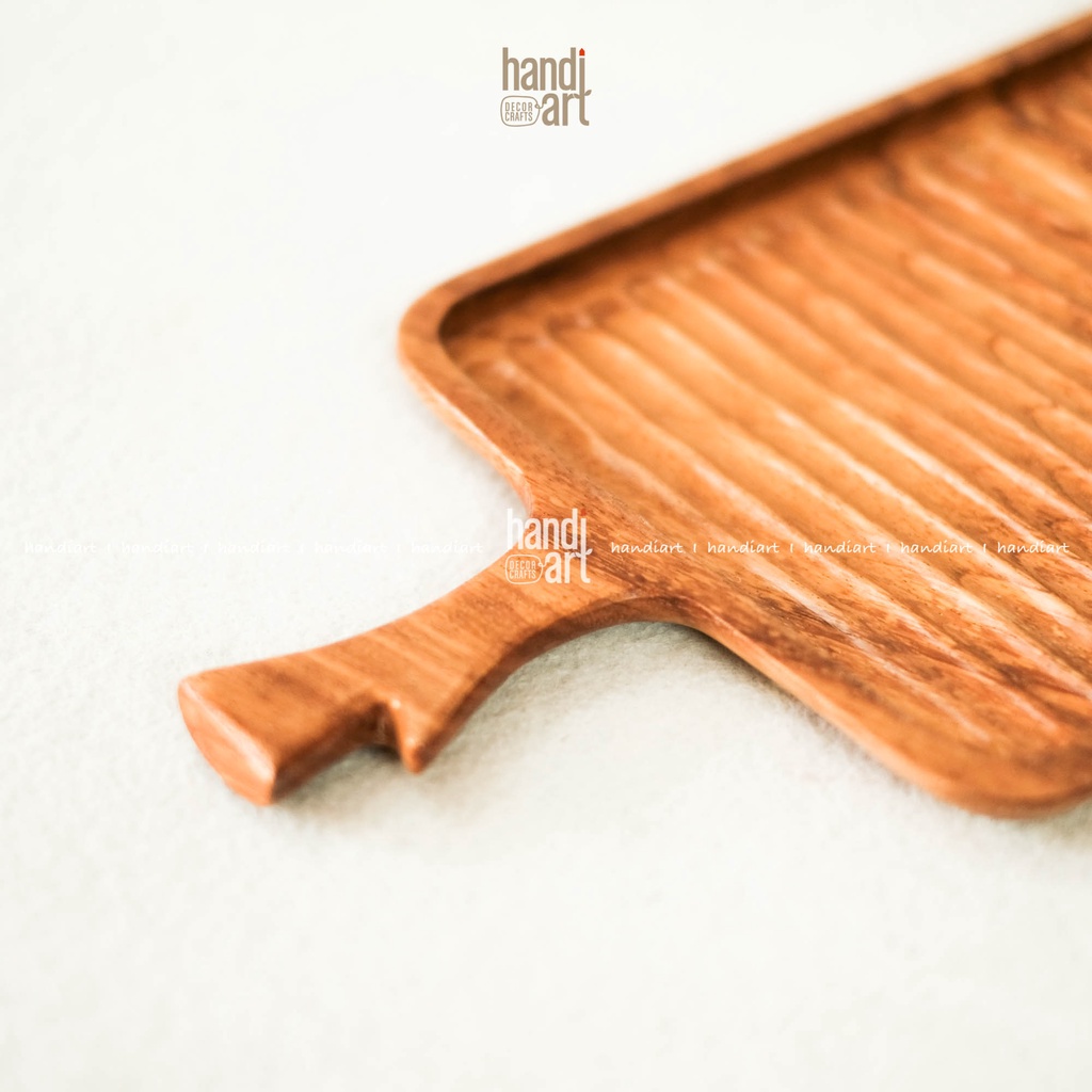 Được làm từ gỗ gõ đỏ nguyên khối tự nhiên sử dụng bền và àn toànKhay đươc lau dầu oliu, lòng khay chạm khắc hoạ tiết tinh tế, Ít bám thức ăn, dễ dàng vệ sinh.