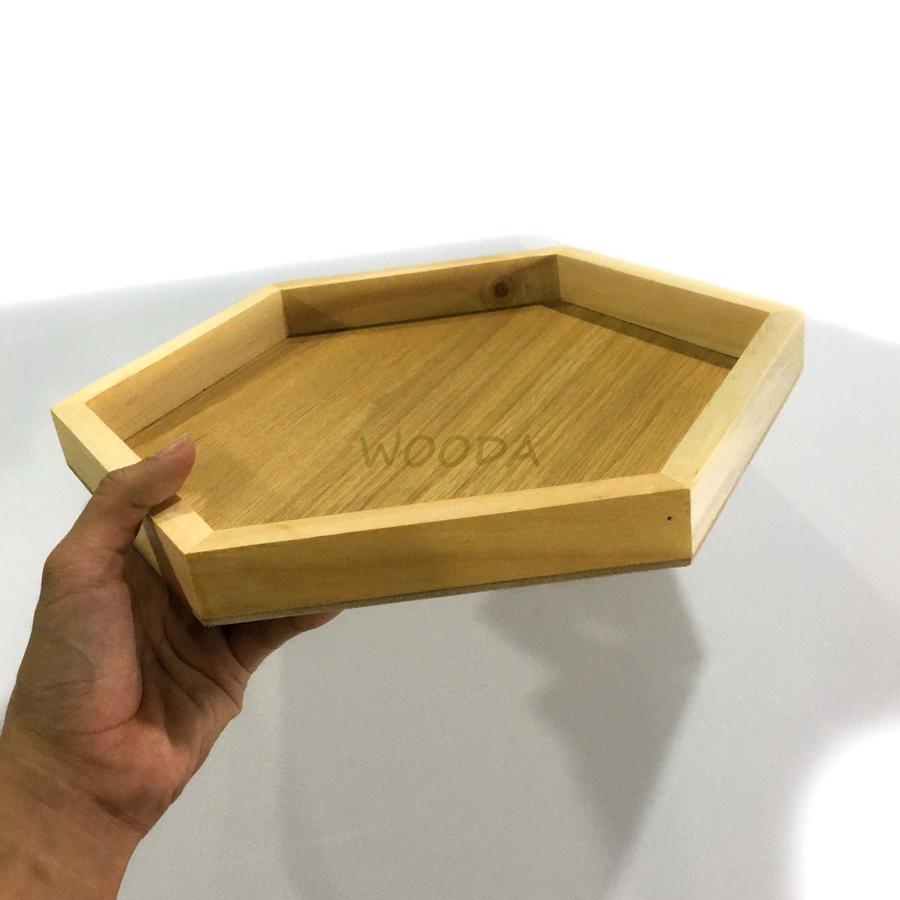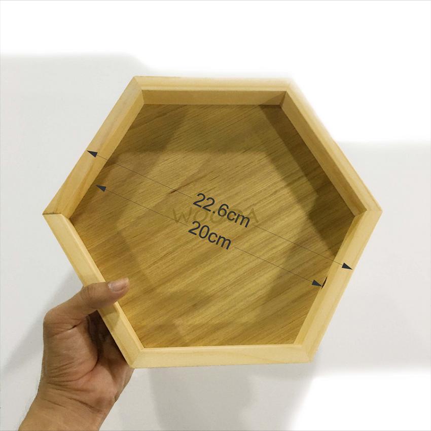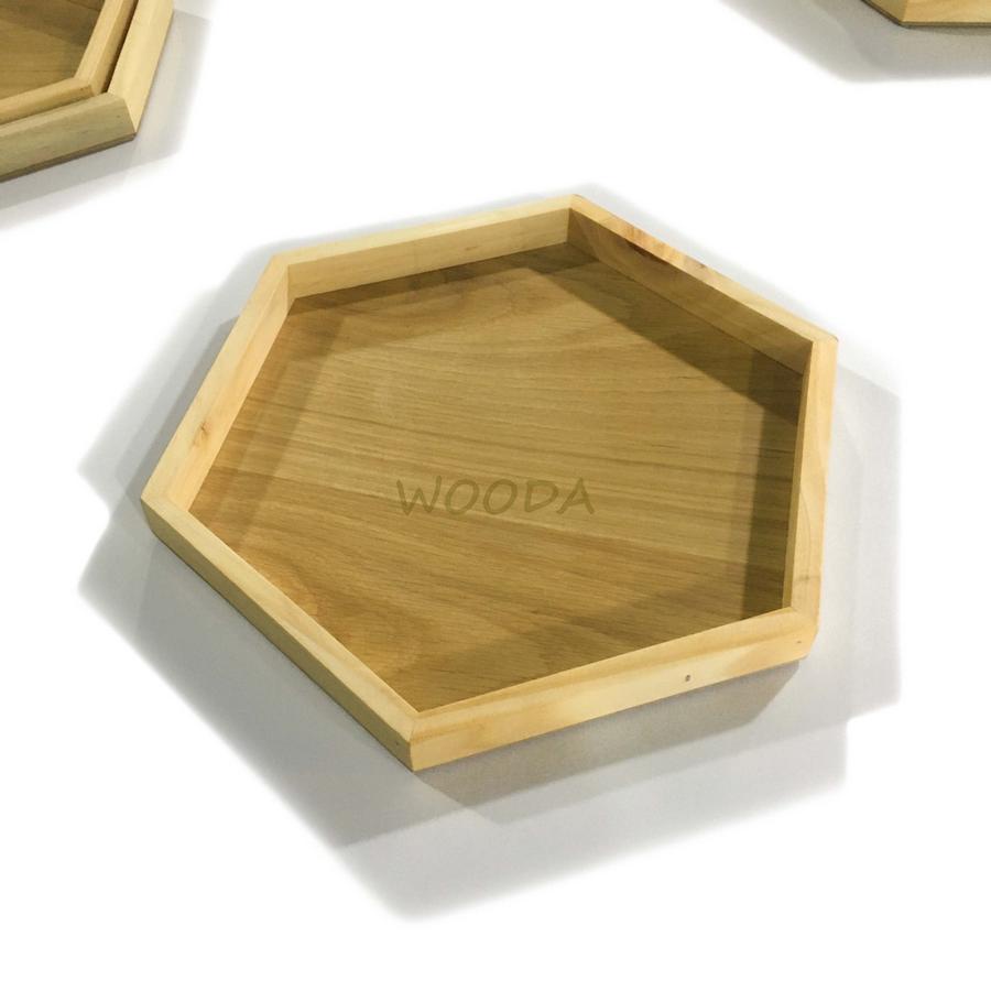 Khay gỗ thông hình lục giác, khay gỗ đựng đồ, khay đựng trà gỗ thông