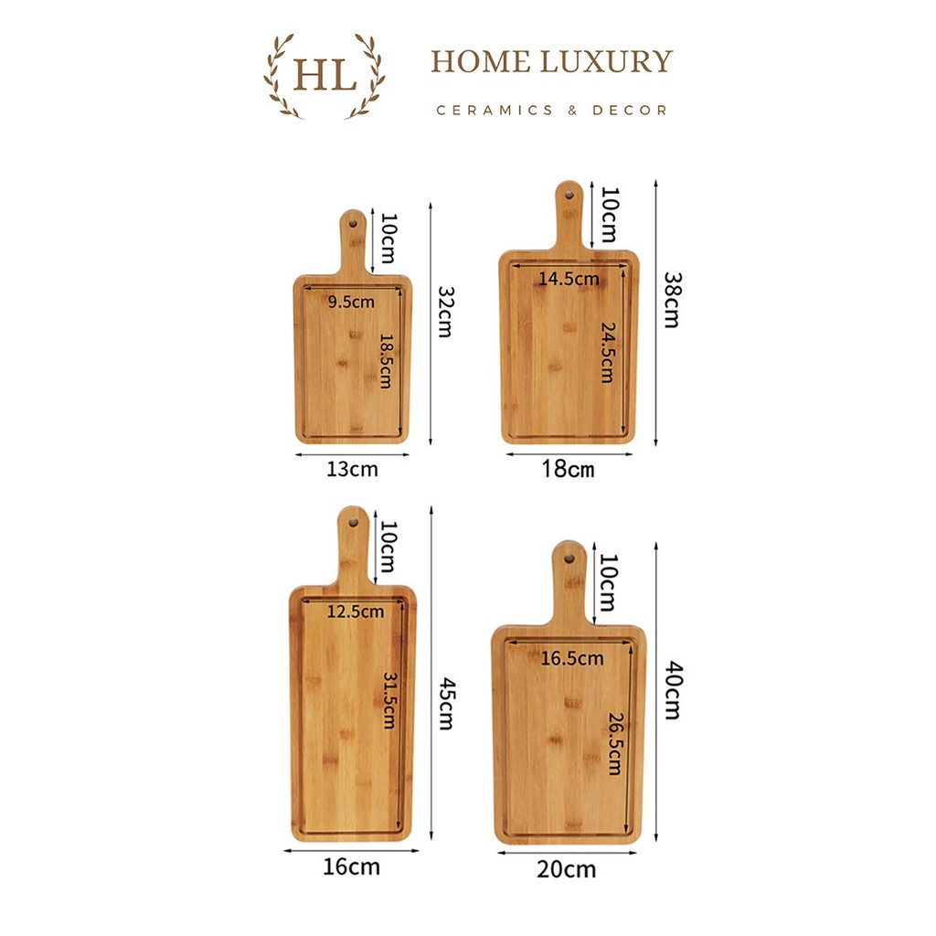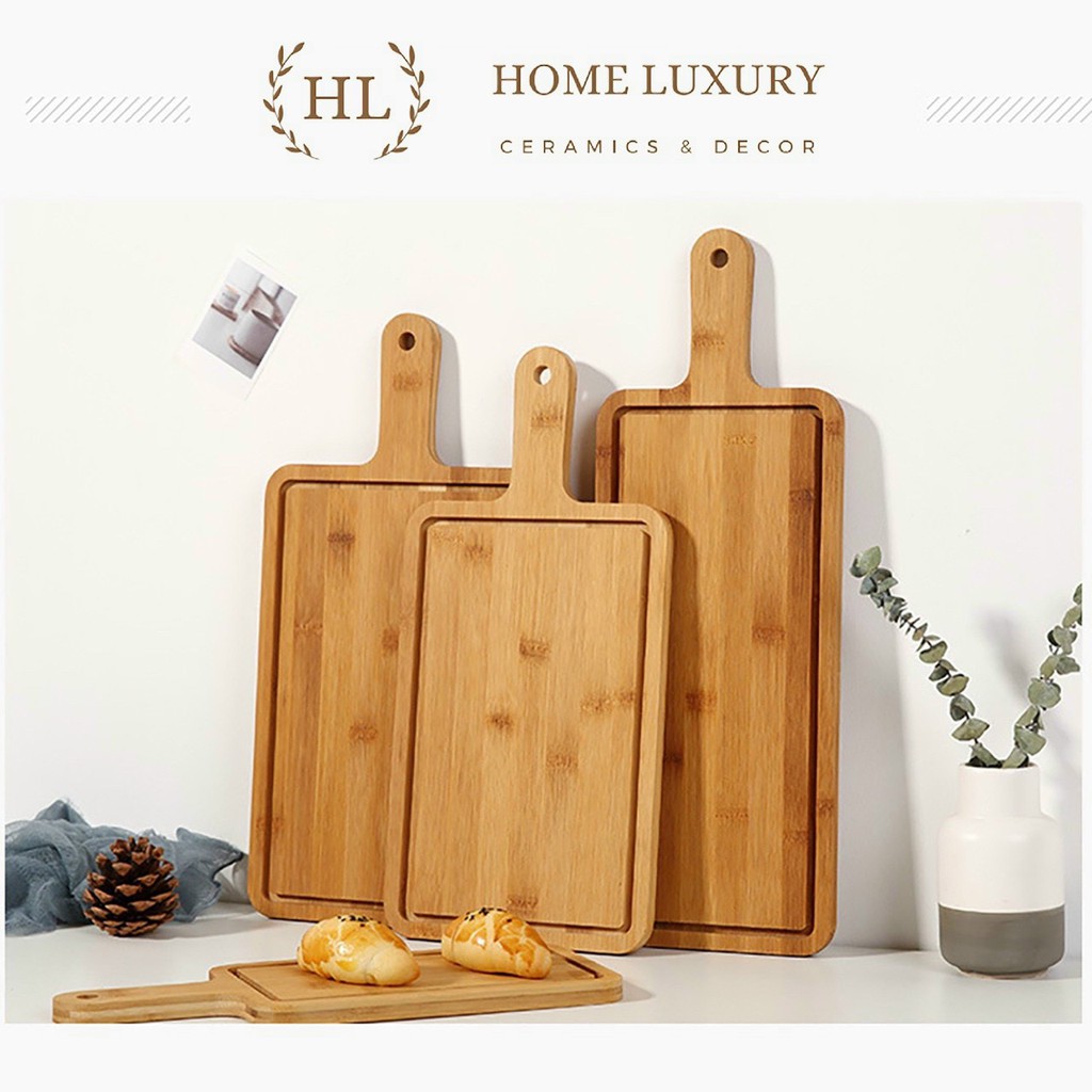 Nhà cửa & Đời sống > Dụng cụ nhà bếp > Thớt || Khay gỗ tre có tay cầm hình chữ nhật, khay gỗ tre DecorCòn hàng