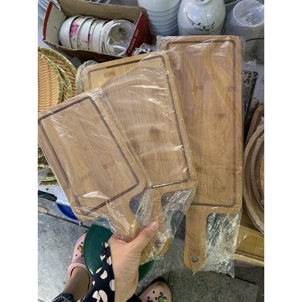 Thớt gỗ tre, khay gỗ tre có tay cầmChất liệu: gỗ tre