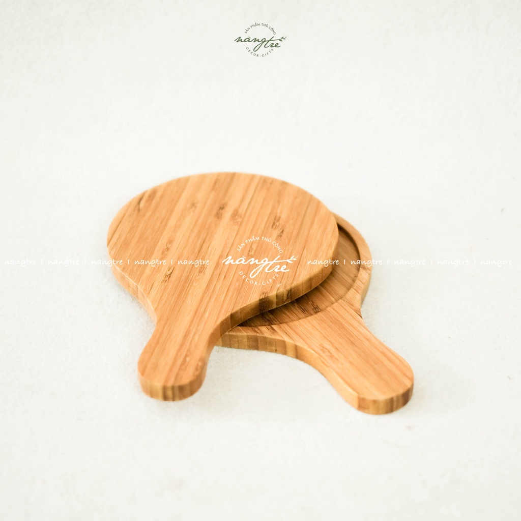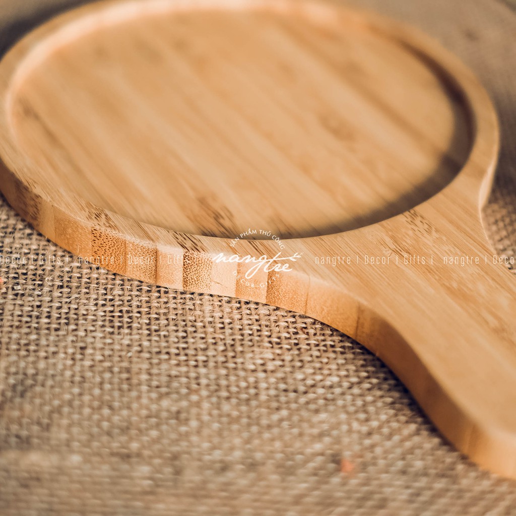 Khay gỗ tre đựng bánh pizza, khay gỗ tròn có tay cầm - wooden tray