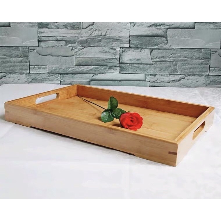 Khay gỗ tre đựng trà,thức ăn hình chữ nhật 38cm*25cm - An toàn, cao cấp,chắc chắn, kết cấu đơn giản dễ vệ sinh