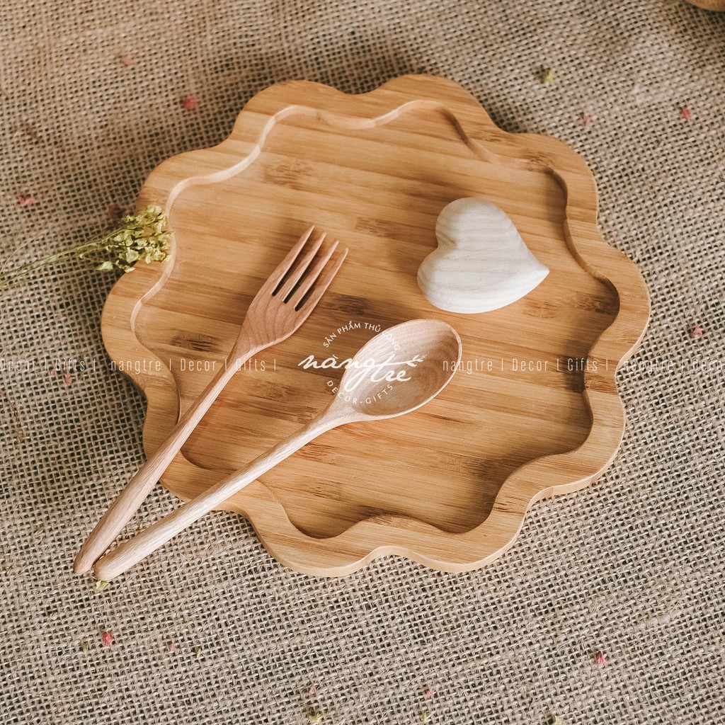 Khay gỗ tre hình bông hoa - Đựng thức ăn -Trang trí( bamboo wooden tray)