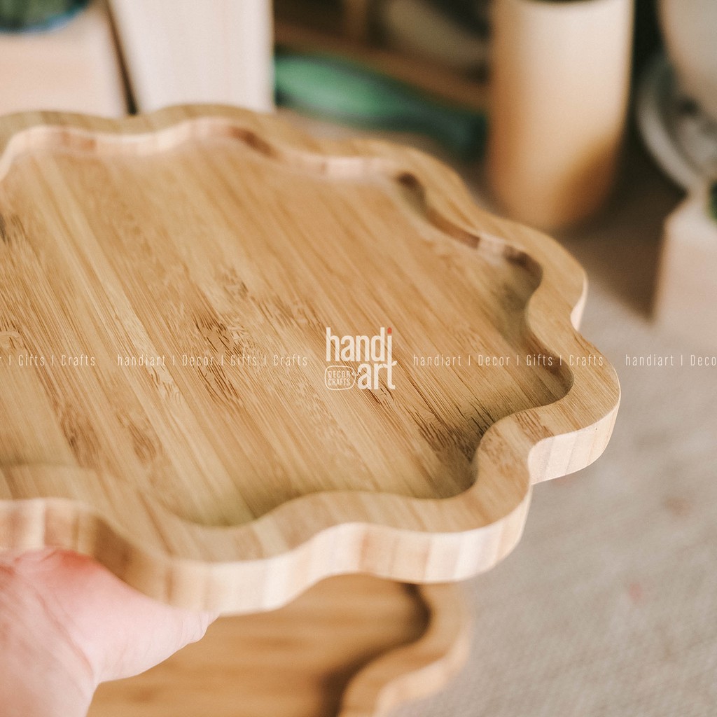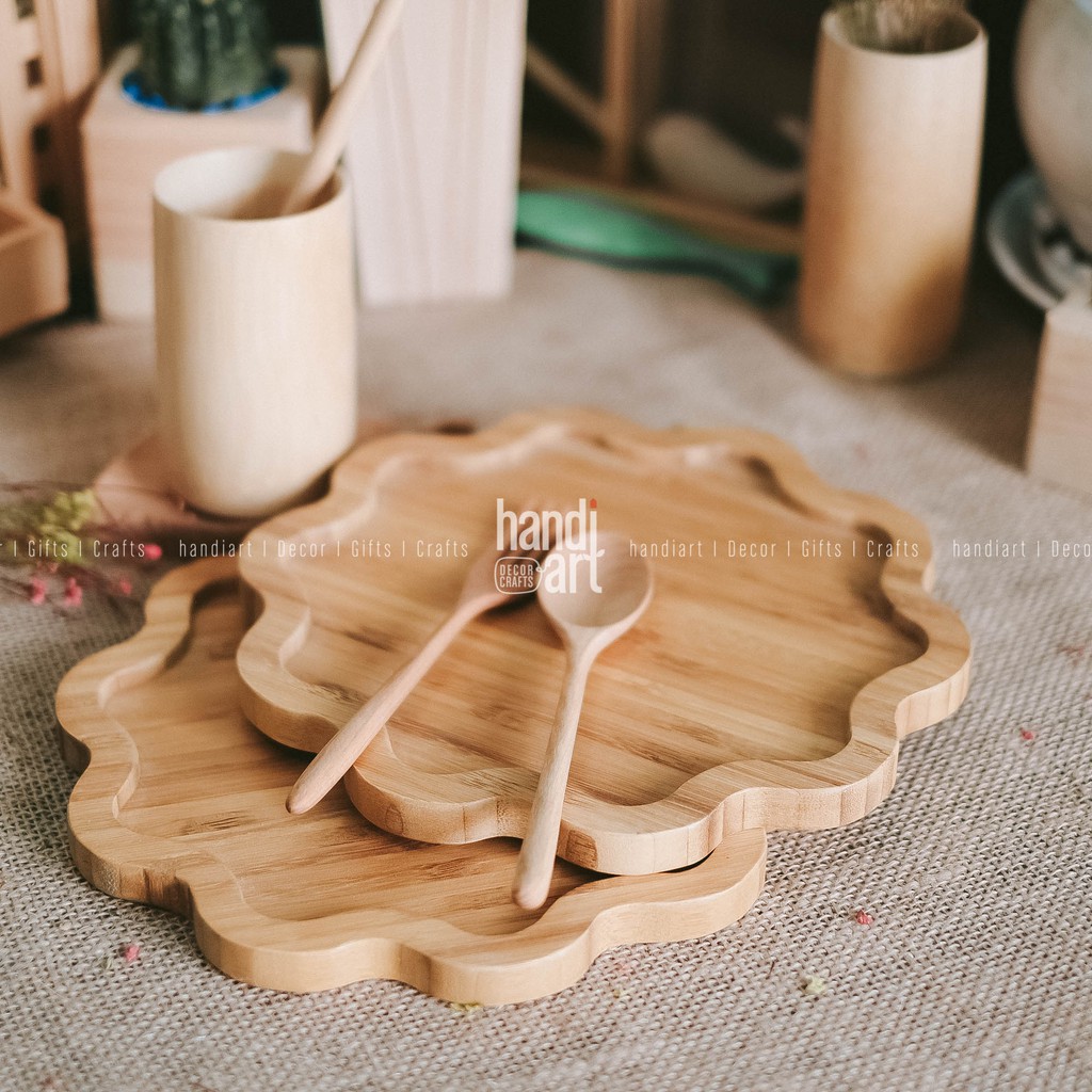 Nhà cửa & Đời sống > Bộ đồ bàn ăn > Khay, tấm lót bàn ăn || Khay gỗ tre hình bông hoa - Khay gỗ tre đựng thức ăn- bamboo wooden trayCòn hàng
